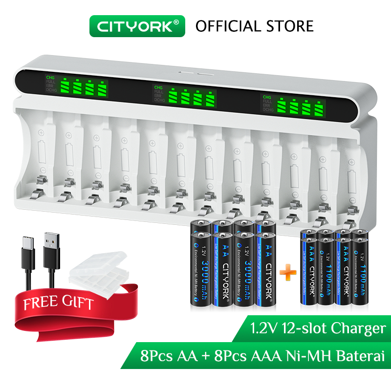 Cityork LCD Display Level Display Smart Battery Charger Battery Capacity Display with 12 Slots for AA/AA NiCd NiMH Rechargeable Batteries AA/AAA Charger Toys, remote controls etc.