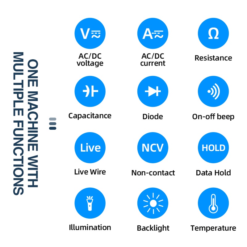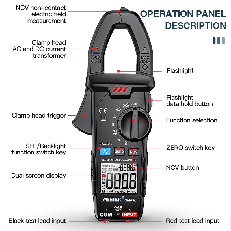 Clamp Multimeter 600A AC DC Current Clamp Meter Temperature Measure On-Off Beeping Smart Anti-Burn Meter 6000 Count Multimeter High Precision Digital Clamp Meter NCV Ohmmeter Diode Resistance Continuity Tester Non-Contact Multimeter Digital Clamp Meter