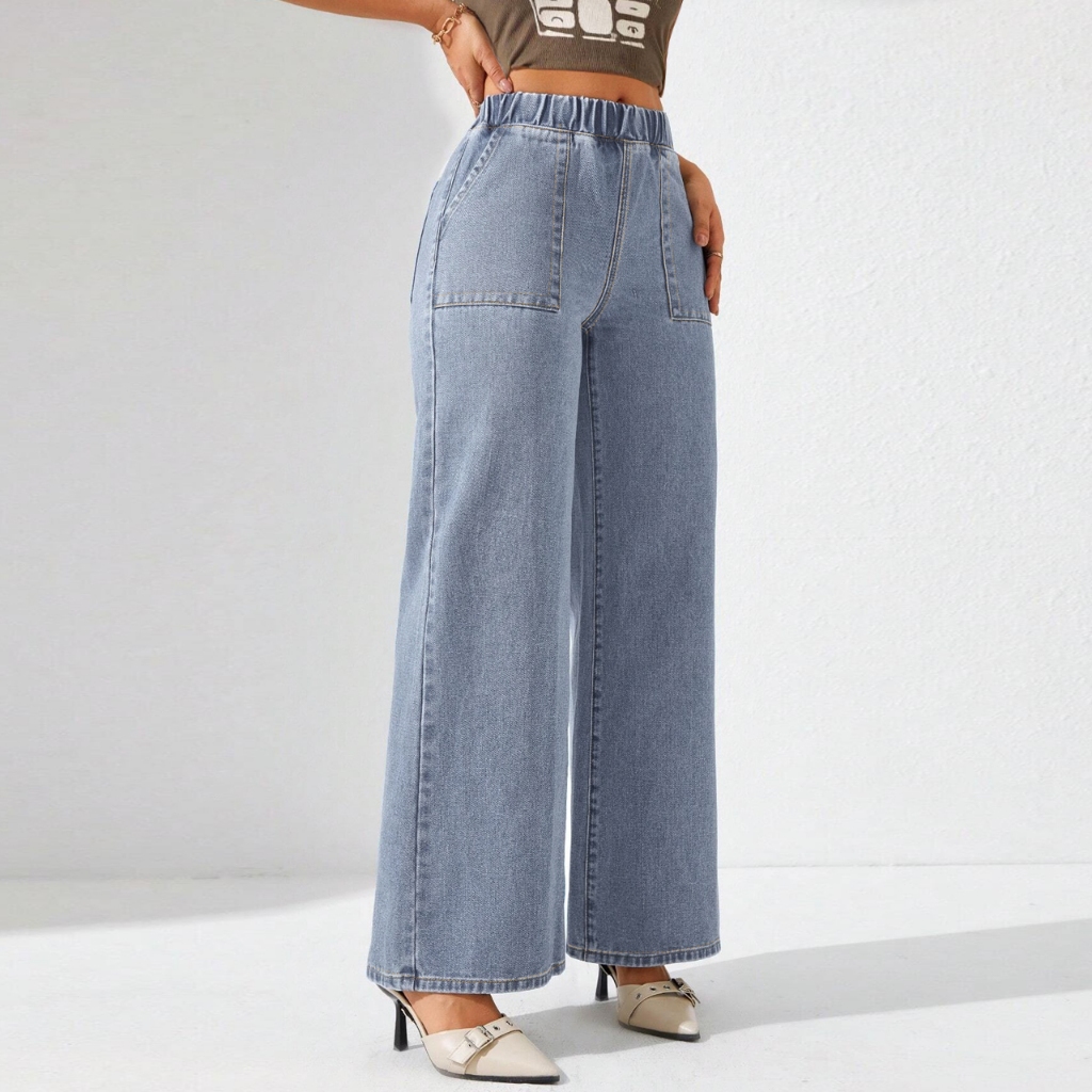 Clashe Baggy Jeans Loose Wide Leg Slack Denim Pants Palazzo Perempuan Pinggang Getah Women Baffel Jeans