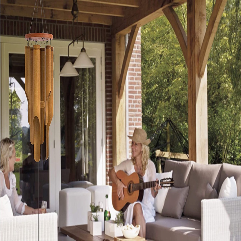Classic Bamboo Wind Chimes - Outdoor Wood Wooden Windchimes Original Finish, 30" Medium & Relaxation Ready