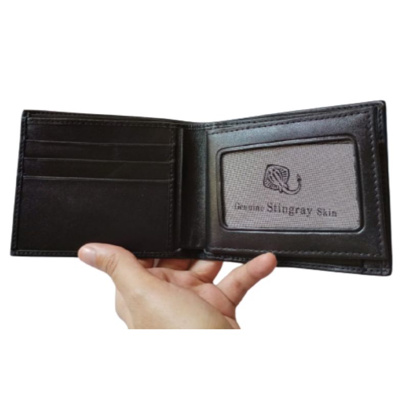 Classic Genuine Stingray Leather Bi-Fold Wallet - Fish Skin Wallet Come with Box