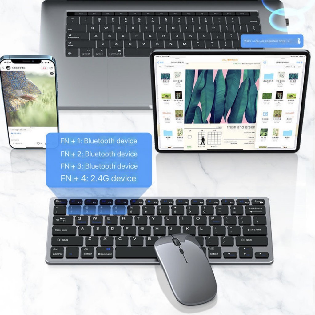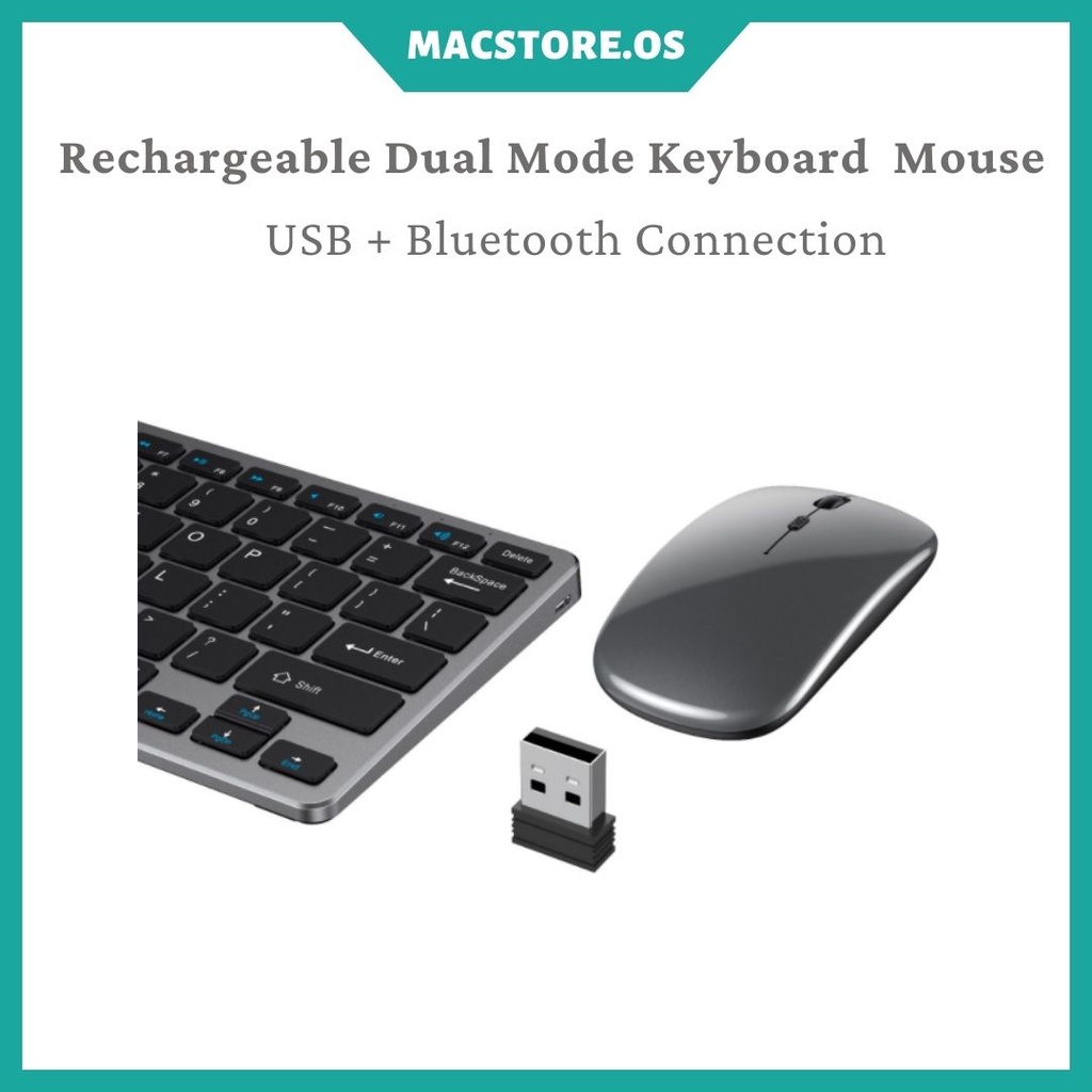 Classic Rechargeable Dual Mode USB + Bluetooth Silent Keyboard & Mouse Set