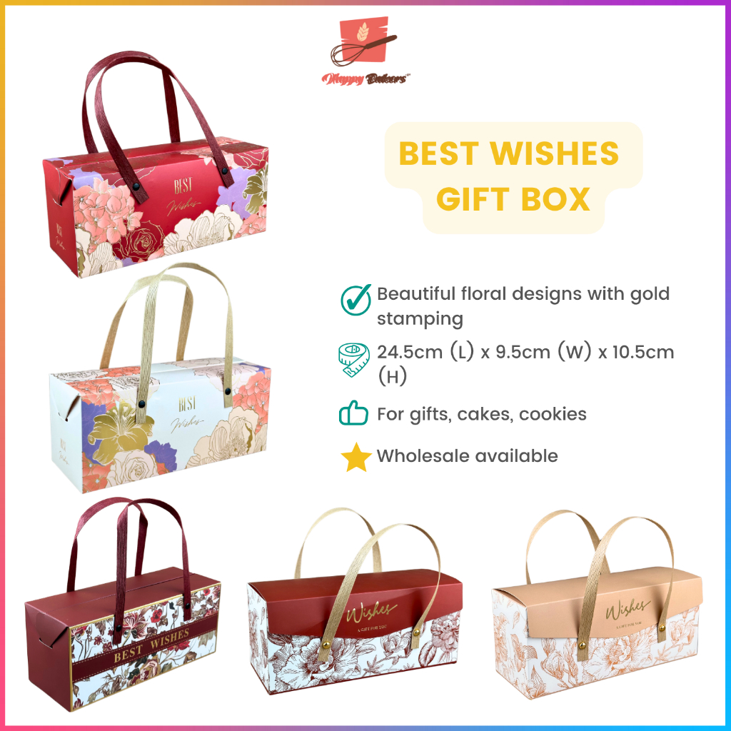 Classical Gift Box With Handle Gold Stamping Doorgift Cakes Biscuit Door Gift Kahwin Kotak Hadiah