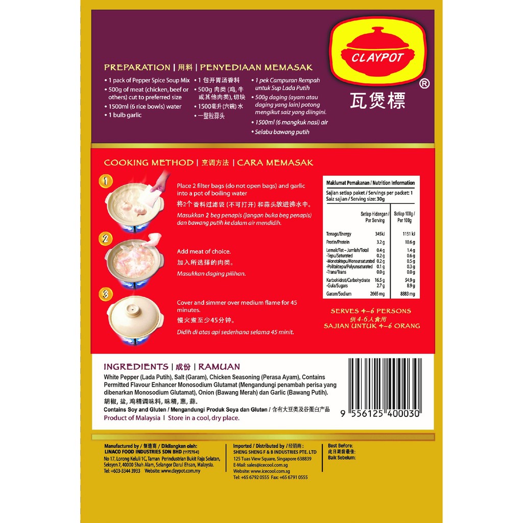 Claypot Pepper Spice Soup / Sup Herba Lada Putih / Sup Herba Tradisional / Singapore Bakuteh / Asli / Broth