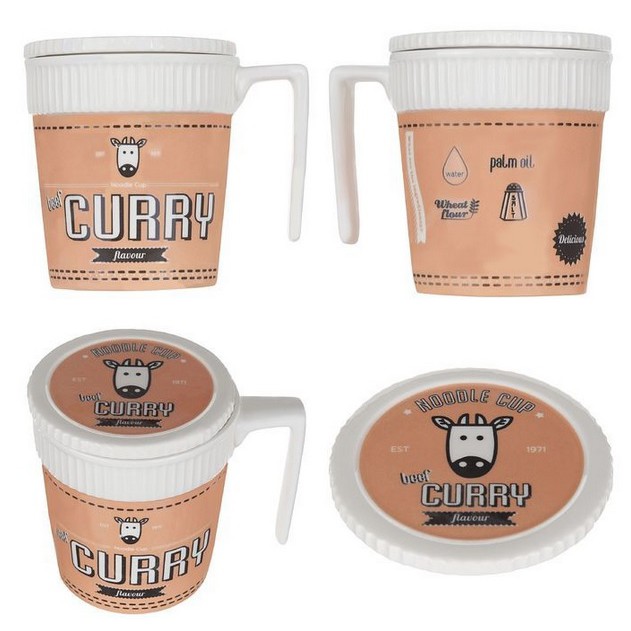 Claytan Ceramic Noodle Mug with Lid 4 Designs (Microwave Safe)