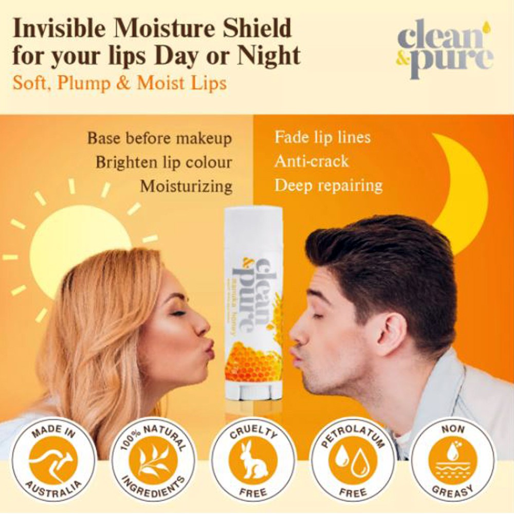 Clean & Pure Lip Balm Manuka Honey 4.7g No Petroleum Beeswax 100% Natural Cracked Dry Sensitive Lips