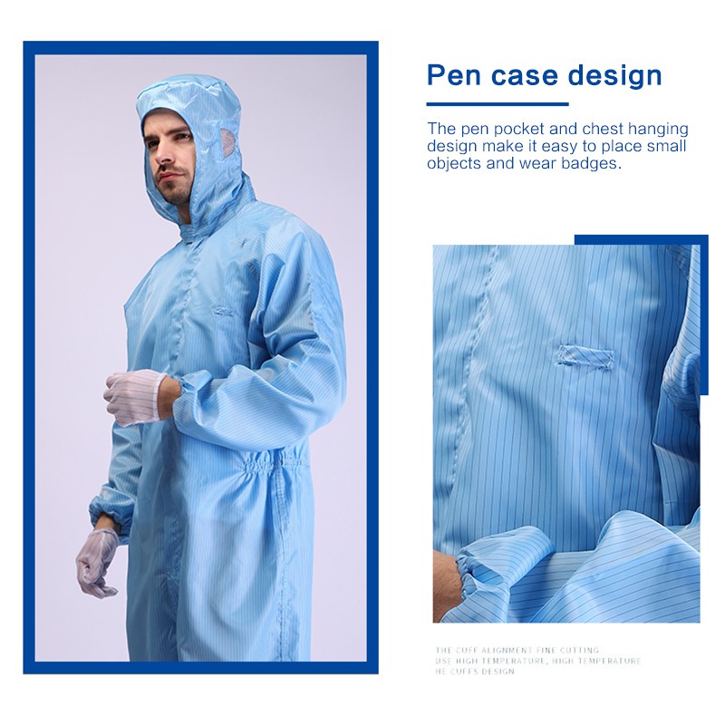 Clean Room Suit ESD Jumpsuit PPE Coverall Washable Anti Static Working Overall Baju Kerja Bengkel Workshop Clothes Lab Suit Chemical Suit laboratory Hooded Isolation Protective Clothing Work Wear Blue Pink White Reusable