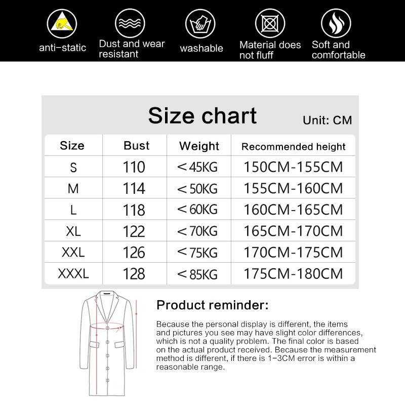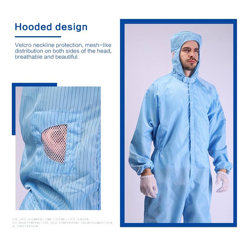 Clean room Overall Jumpsuit Coverall ESD PPE Suit Washable Reusable Anti Static Overalls laboratory Clean room Cloth Dust proof Hooded Coveralls Isolation Protective Clothing Work Wear Clothes Antistatic Safety