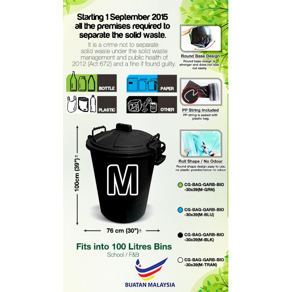 Cleanguard OXO Biodegradable Garbage Bag/ Rubbish Bag (Eco Friendly) (Size : S, M, L, XL)
