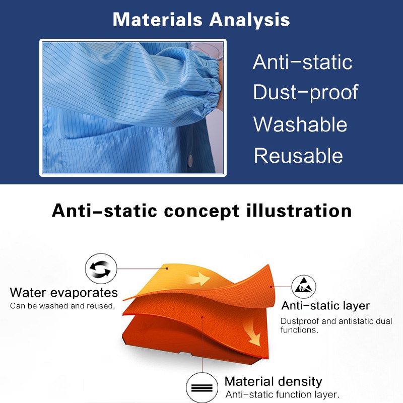 Cleanroom Suit clean room suit ESD Jumpsuit PPE Suit Washable Anti Static Overall Chemical Coverall Isolation Protective Clothing Clothes Antistatic laboratory Coverall Factory Electronic Assembly Pharmaceutical Food Processing Reusable