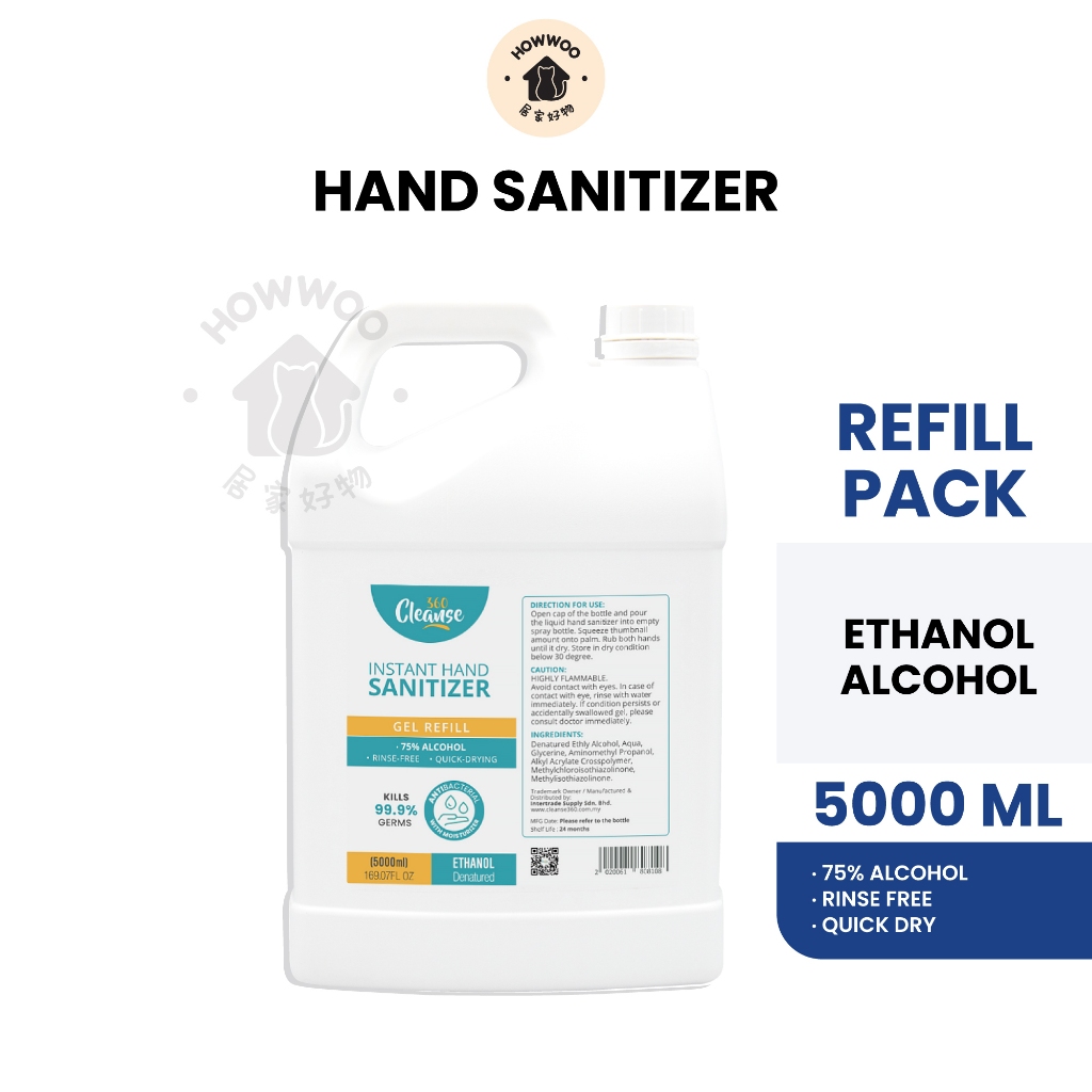 Cleanse360 Hand Sanitizer 75% Alcohol [Gel Refill - 5000ml / 5L / 5 Liter] [Ethanol / IPA Alcohol]