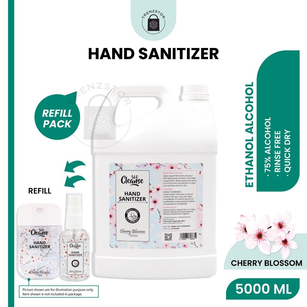 Cleanse360 Hand Sanitizer 75% Alcohol [Liquid/Spray Refill - 5000ml / 5L / 5 Liter] [Ethanol / IPA Alcohol]