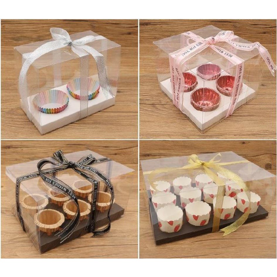 Clear Cup Cake Box Transparent Clear Boxes 2 , 4 , 6 , 12 Transparent Cup Cake Box