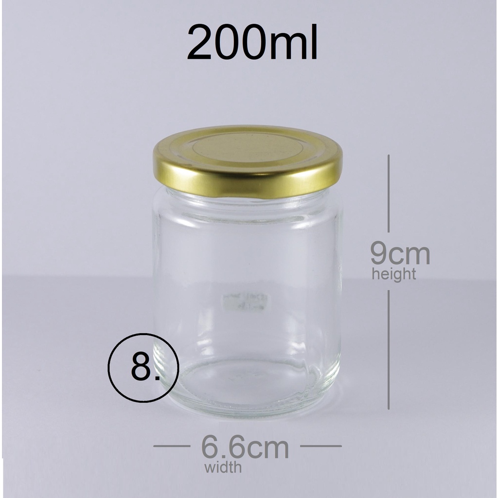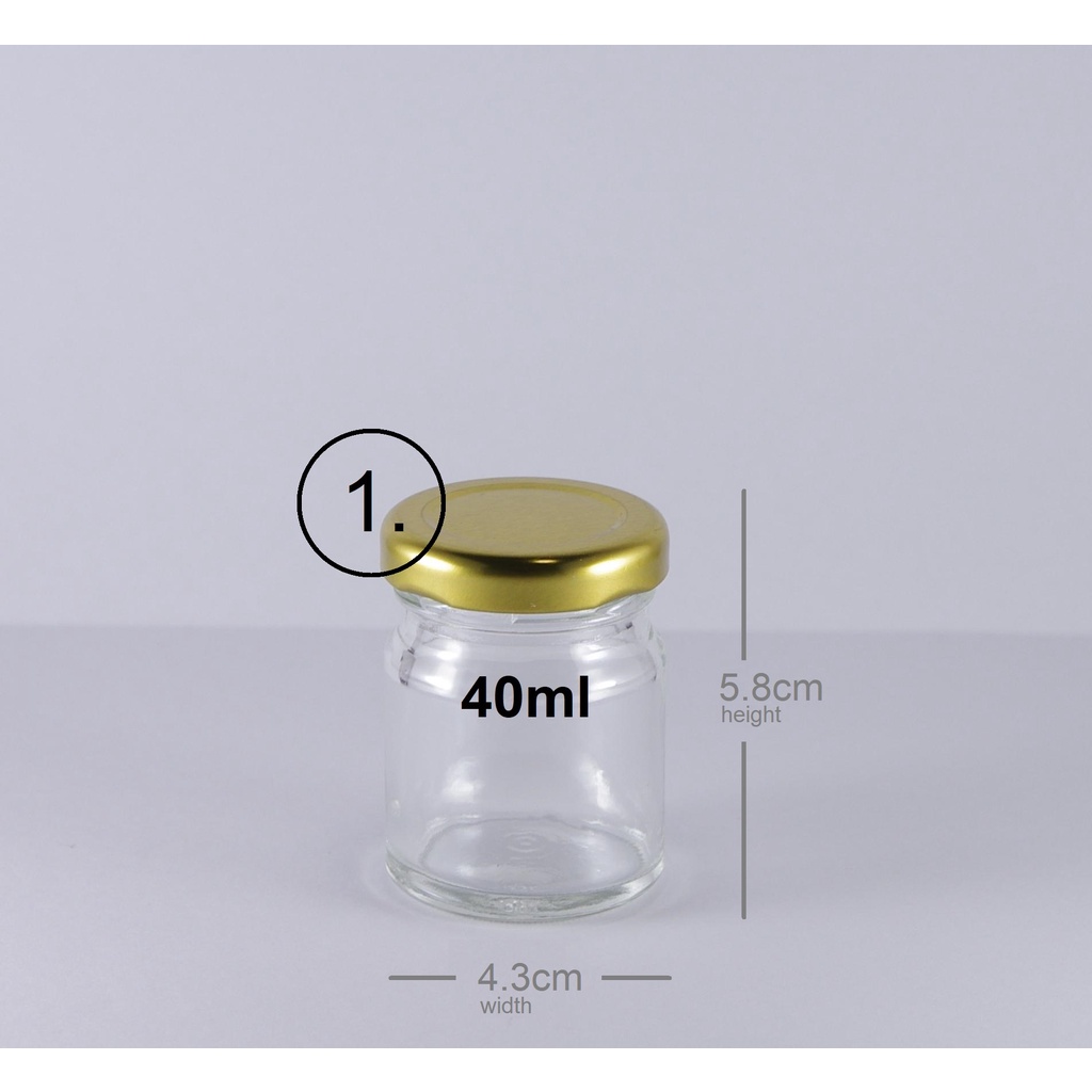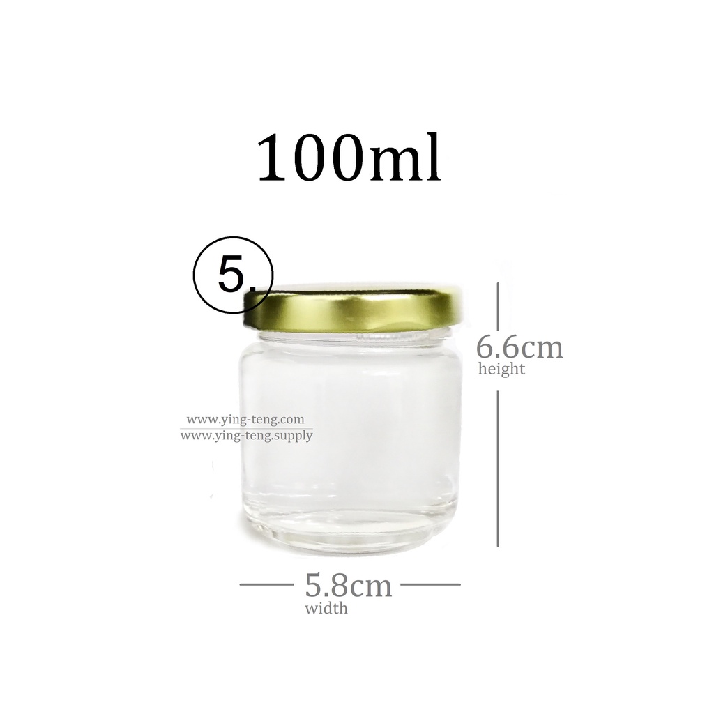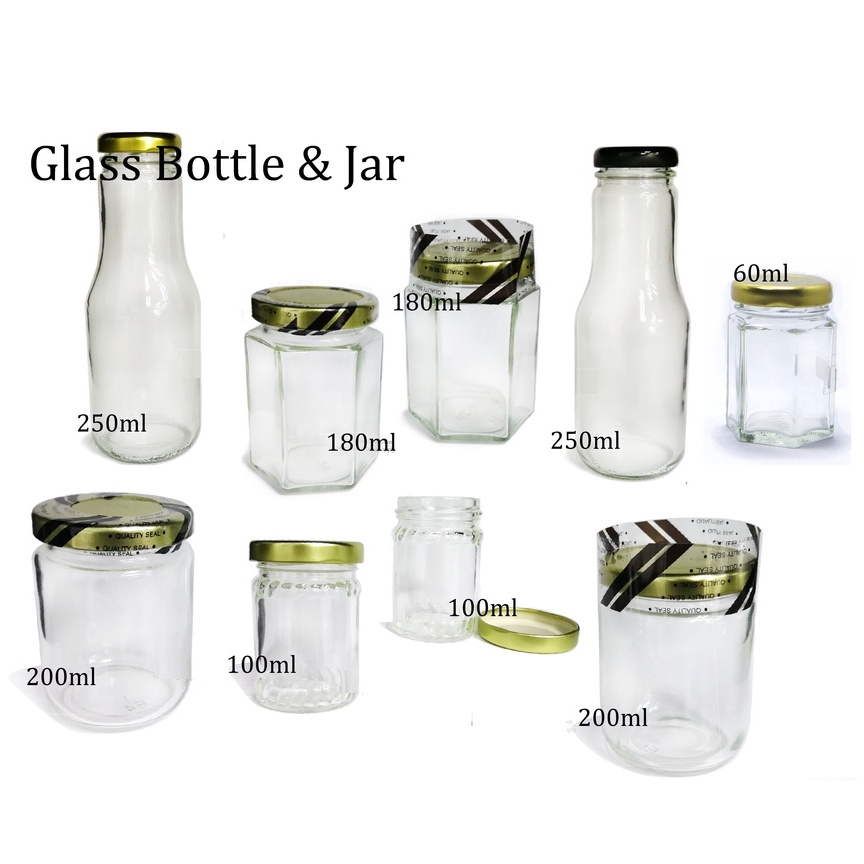 Clear Glass Jar / Glass Bottle/ Food Jar/ Juice Bottle, 40ml/60ml/100ml/180ml/200ml250ml Gold Cap / Black Cap