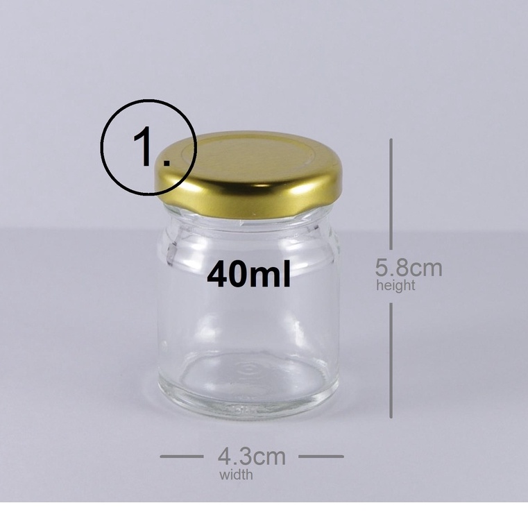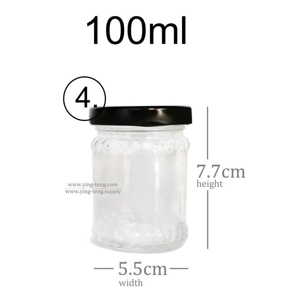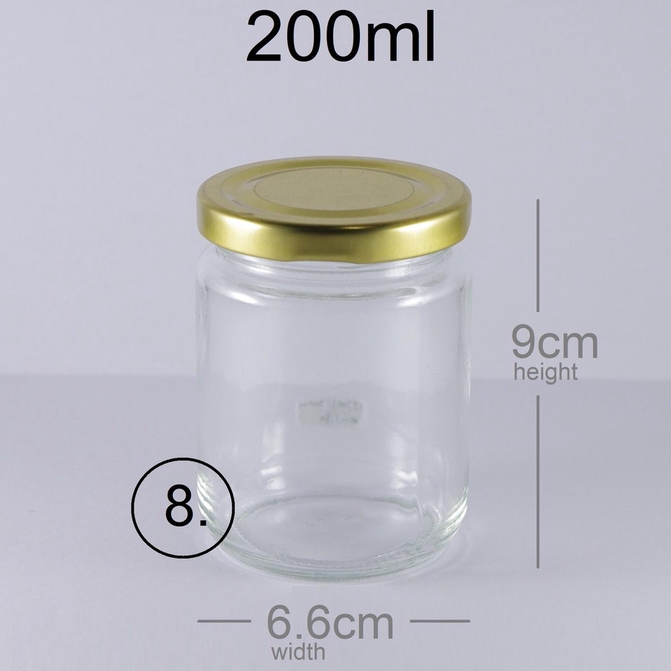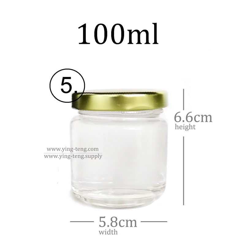 Clear Glass Jar / Glass Bottle/ Food Jar/ Juice Bottle, 40ml/60ml/100ml/180ml/200ml250ml Gold Cap / Black Cap