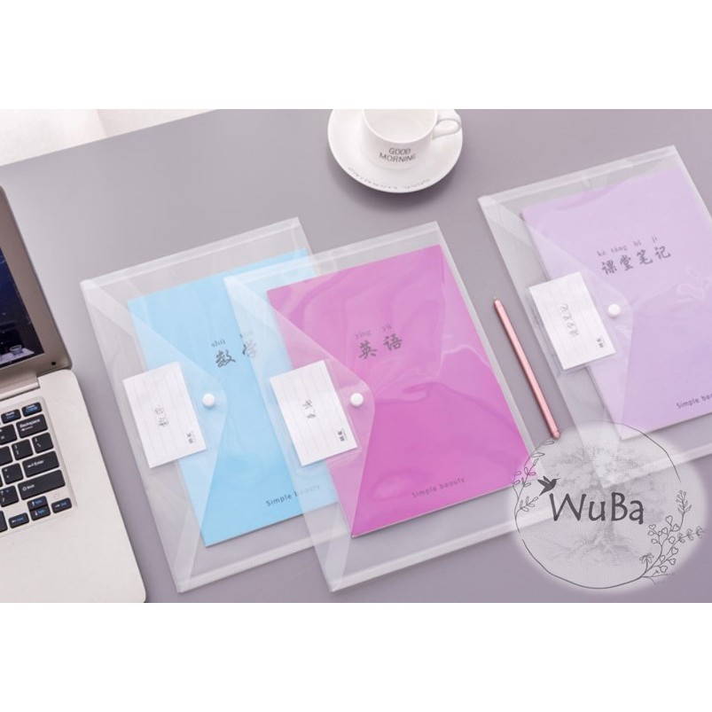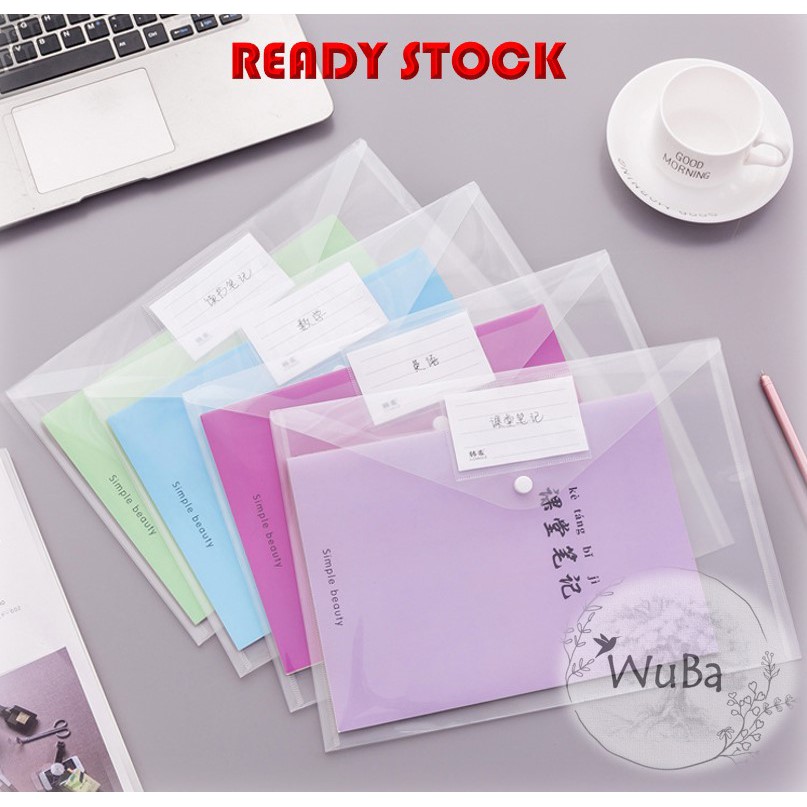 Clear Transparent A4 Size Button Plastic File With Tag / A4 Poket File Butang Lutsinar Dengan Tag [READY STOCK]
