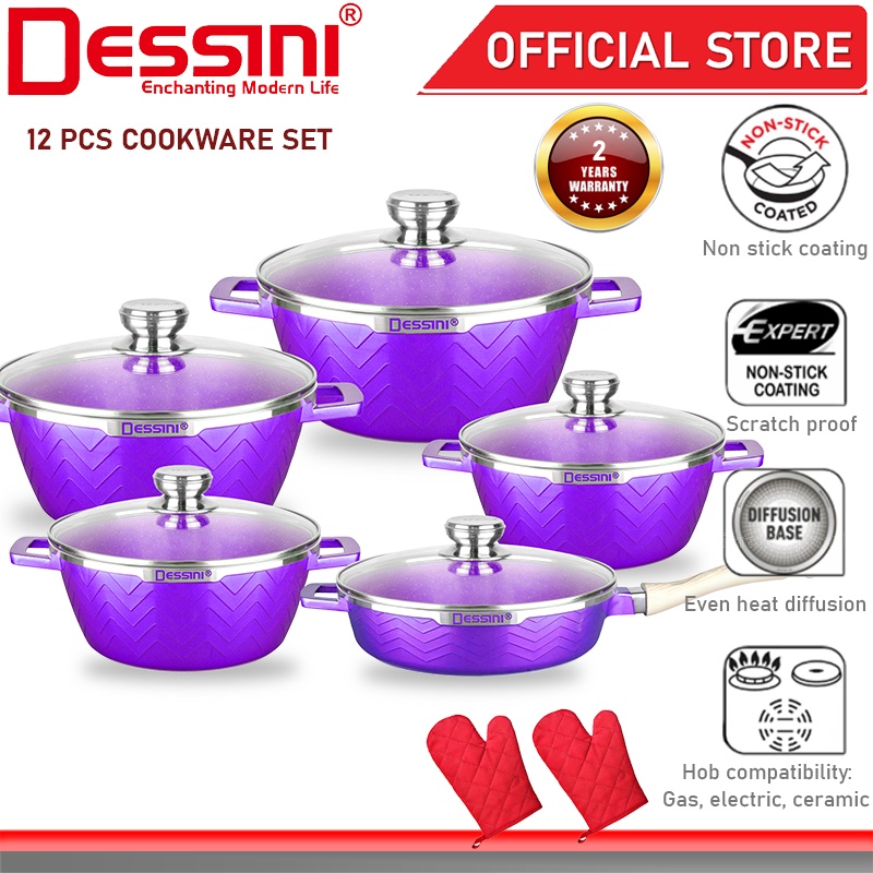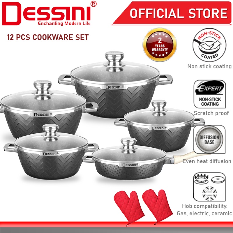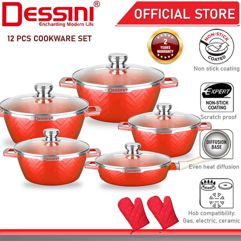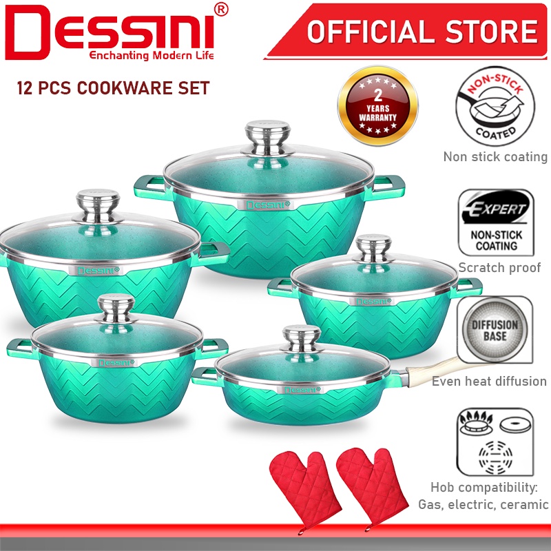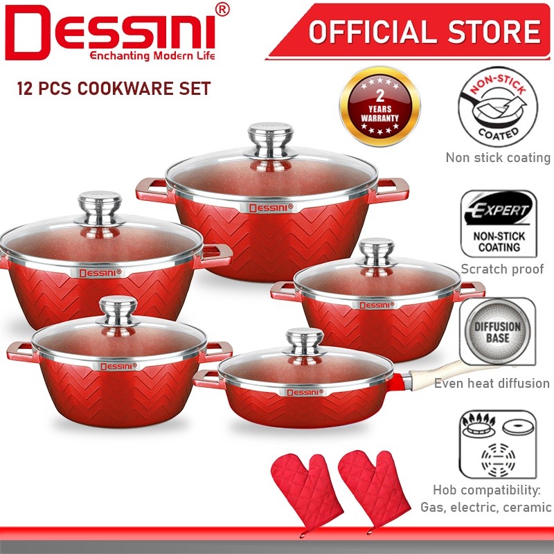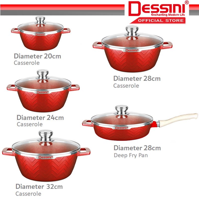 DESSINI ITALY WSB-12-S Die Cast Aluminium Non Stick Casserole Pot Bowl Deep Fry Pan Cookware Tool PERIUK (12 Pcs)