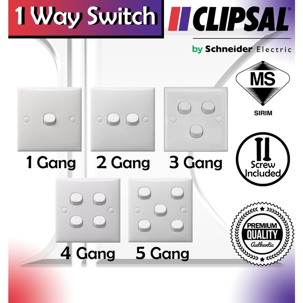 Clipsal Schneider 1 Gang / 2 Gang / 3 Gang / 4 Gang / 5 Gang 1 Way Switch Sirim