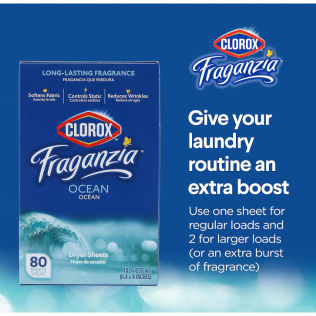 Clorox Fraganzia Dryer Sheets Wrinkle-Reducing Fabric Softener Sheets Dryer Sheets USA