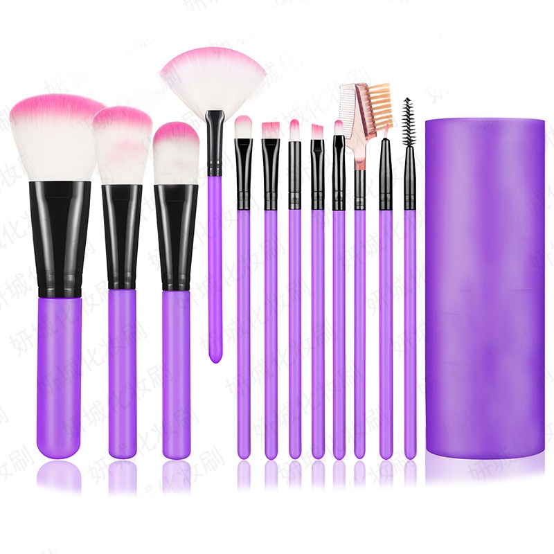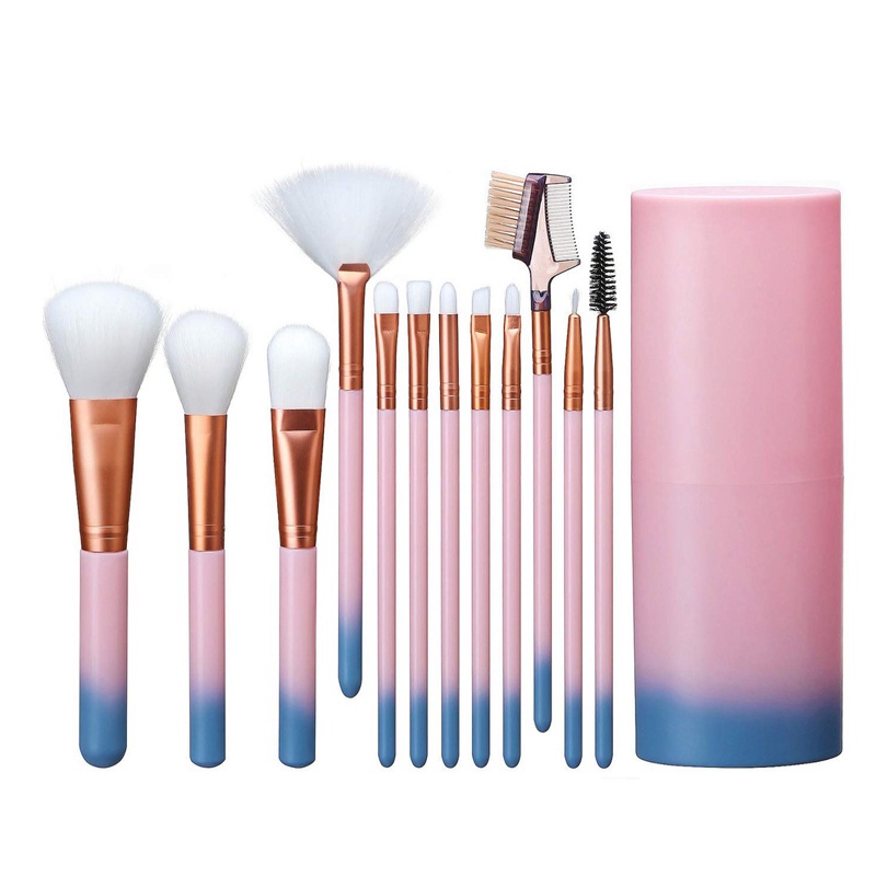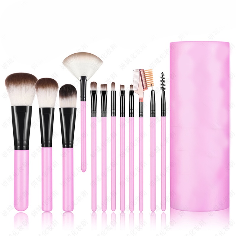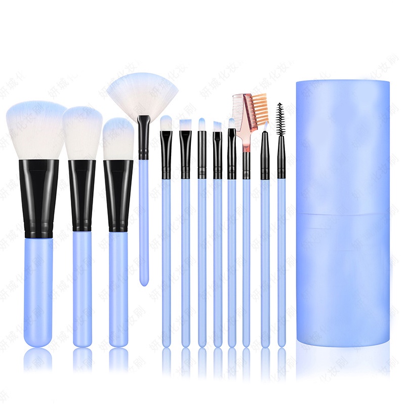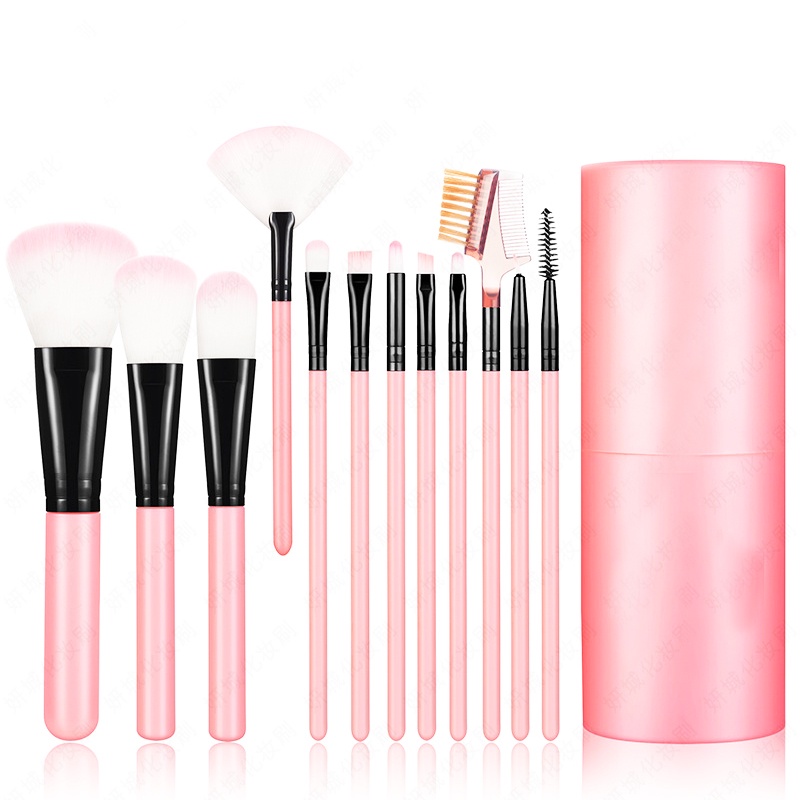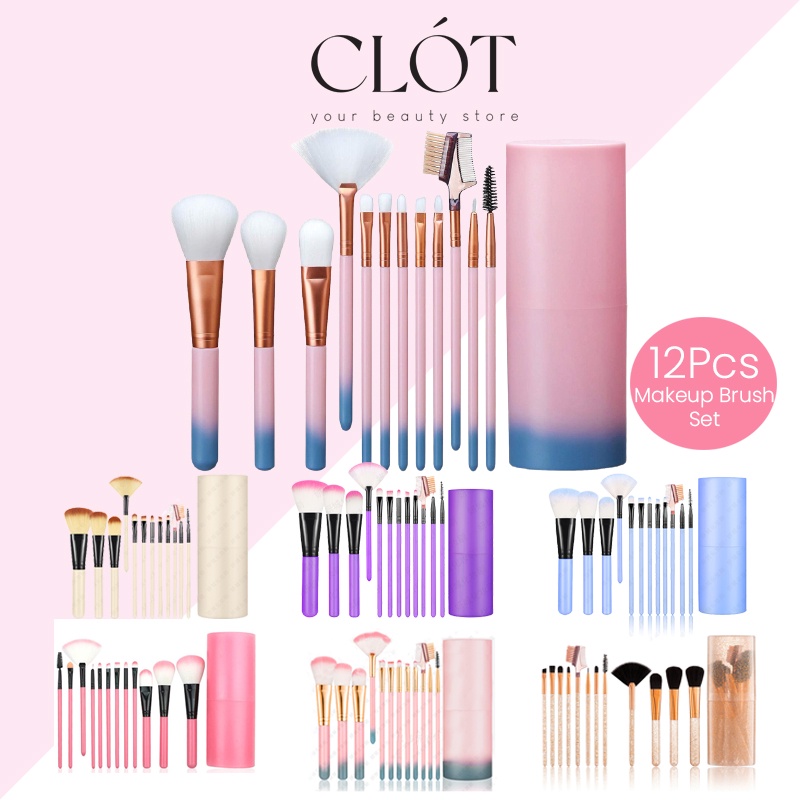 Clot Makeup Brush Set with Round Cylinder Holder (12 Pcs)