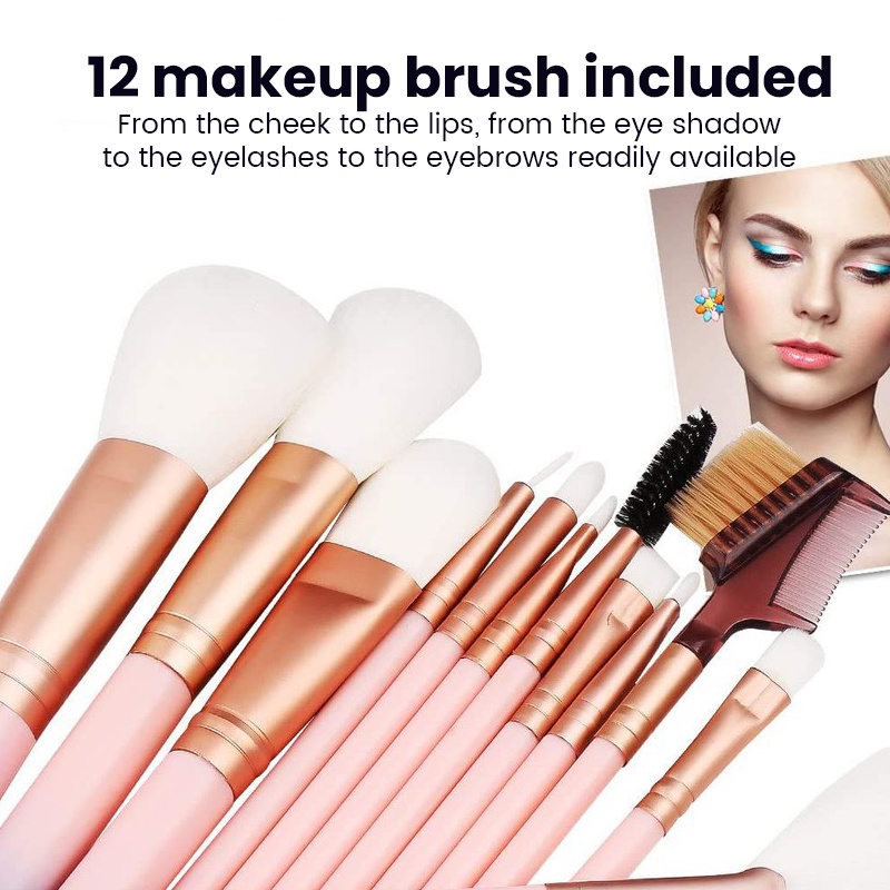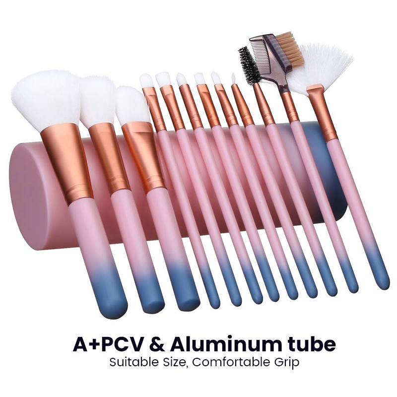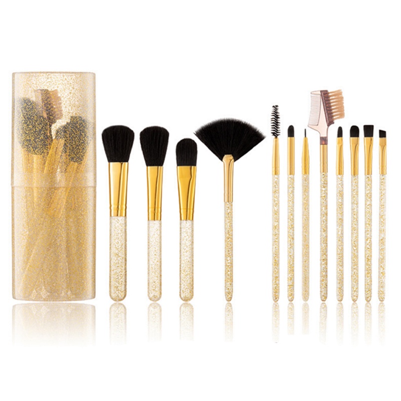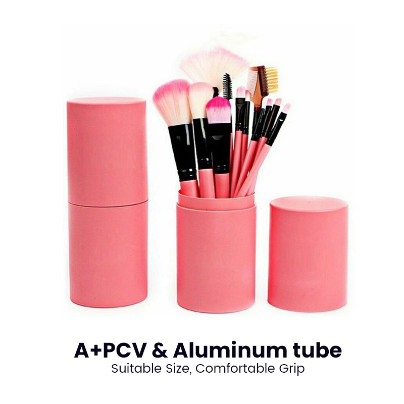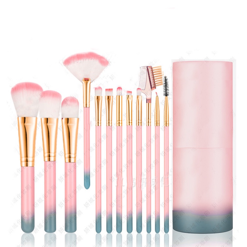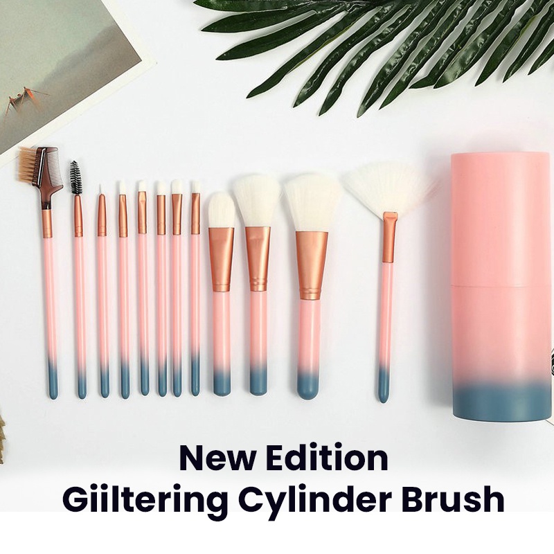 Clot Makeup Brush Set with Round Cylinder Holder (12 Pcs)