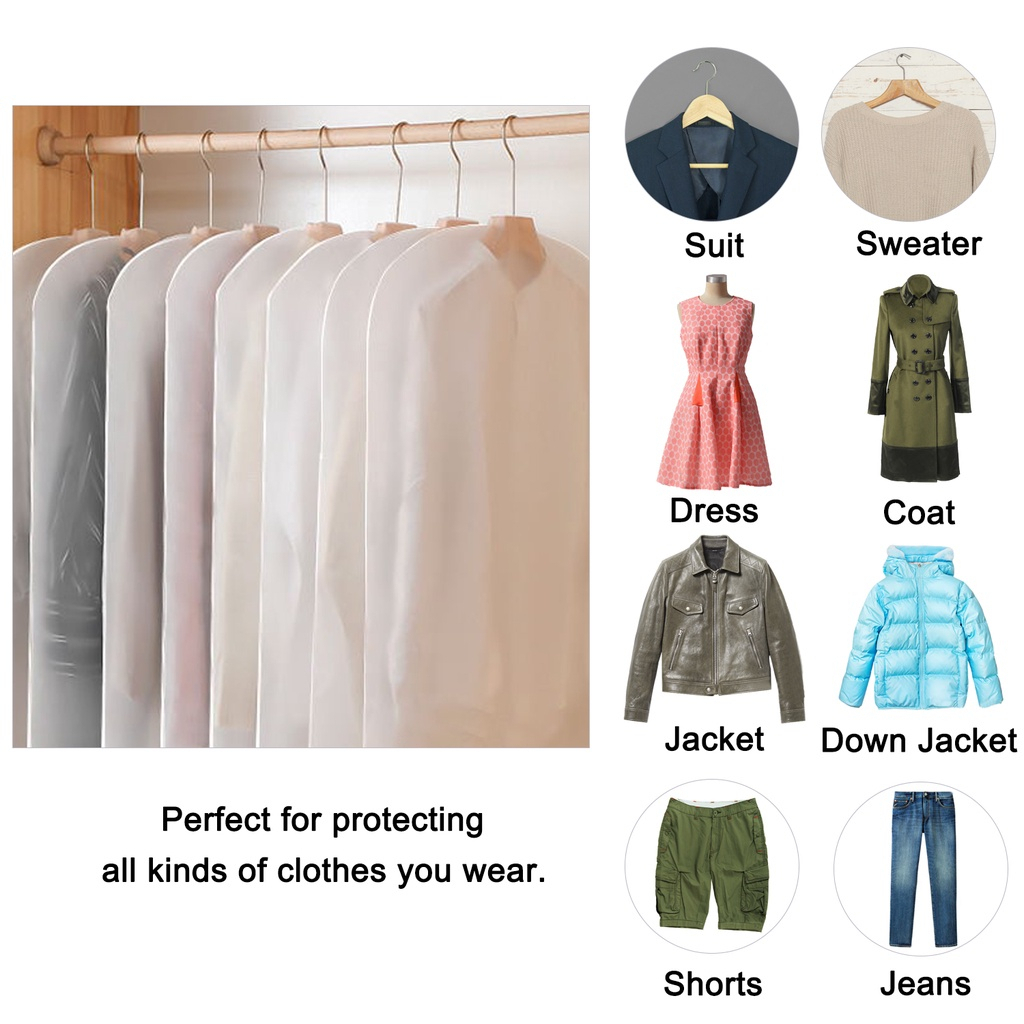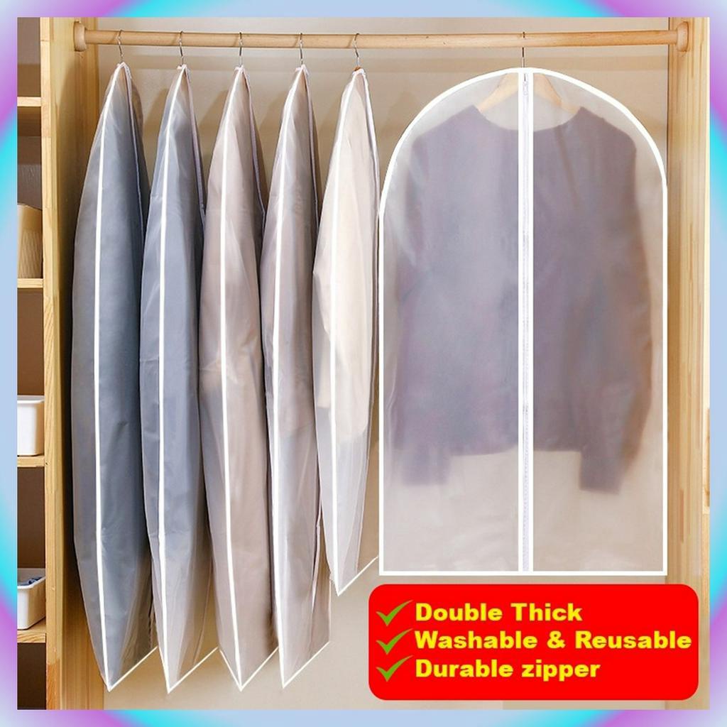 Clothes Dust Cover Transparent Dust Bag Hanging Cloth Pocket Washable Dust-Proof Coat Plastik Baju Cover Protector