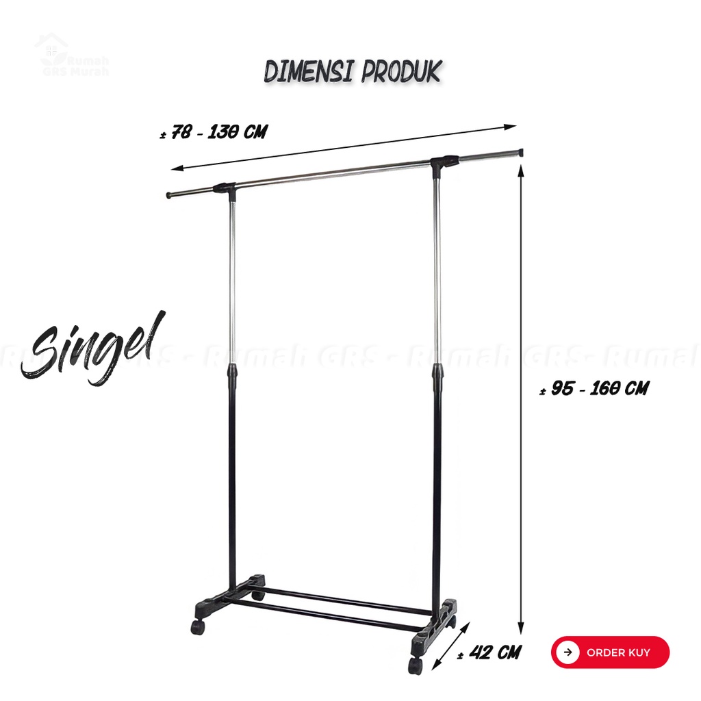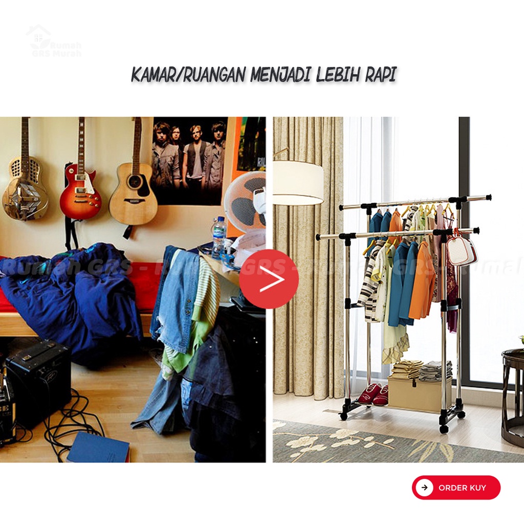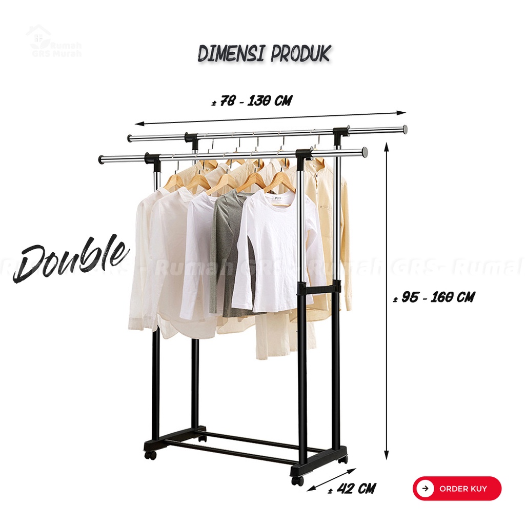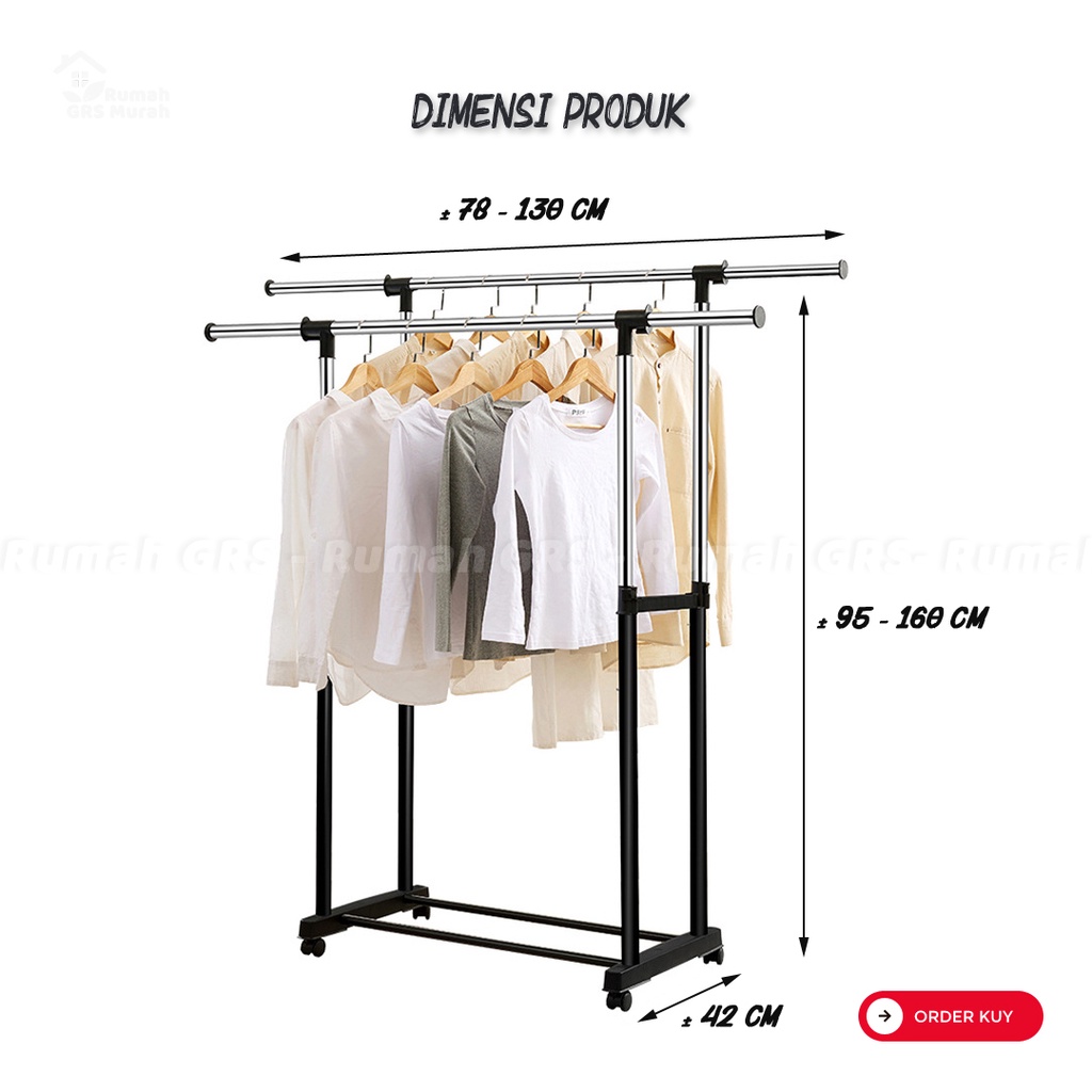 Clothesline Rack And Hanging Clothes Rack Stainless Steel Double Goal Iron Equipped With 4 Wheels