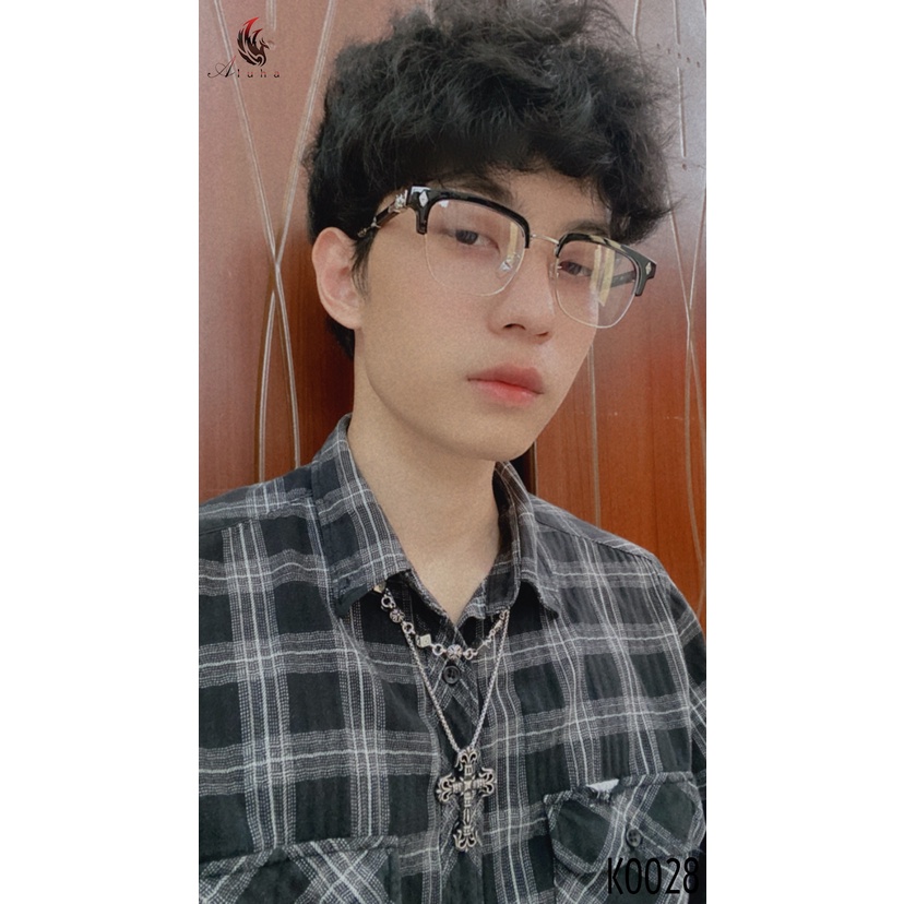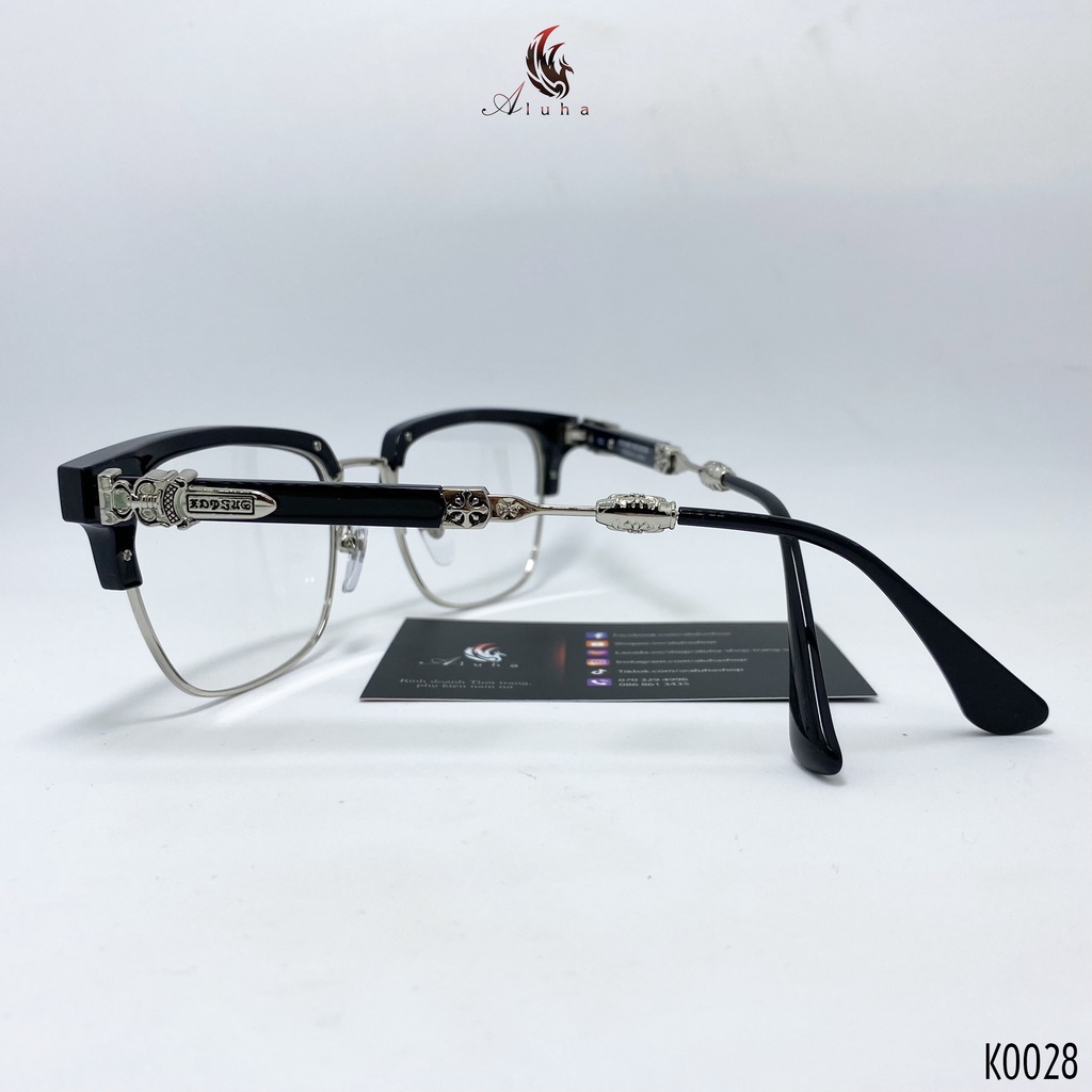 Clubmaster shape Titanium-plated eyeglass frames, large size glasses for men, sharp Gothic patterns - K0028 - Aluha