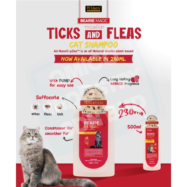 Cluve®T Bearie Magic Ticks & Fleas Shampoo 230ml - 500ml, for dogs and cats, non poison suitable for long term use