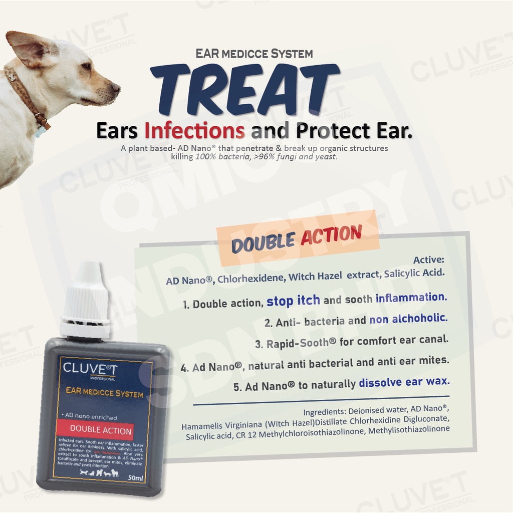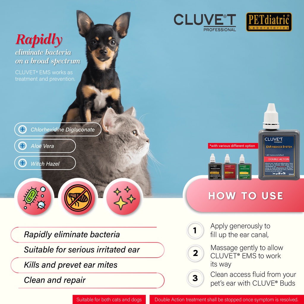 Cluve®T Ear Medicce System Double Action Dogs and Cats. 50ml