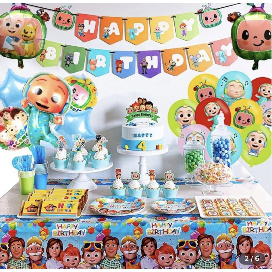 Cocomelon Theme Birthday Party Set party decorations hat plate snack box candy box popcorn box poster Cartoon tableware