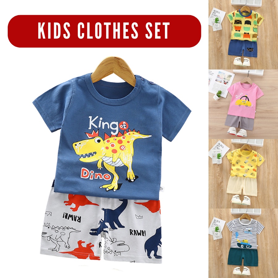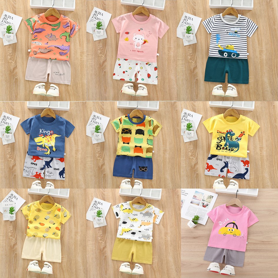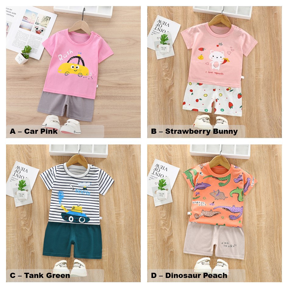 Coconana Baju Budak Playset 6M-4Y Kids Clothes Set Baju Baby Boy Tshirt Girl Sleeves Short Pants Kanak Baju Raya Anak