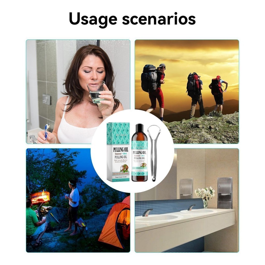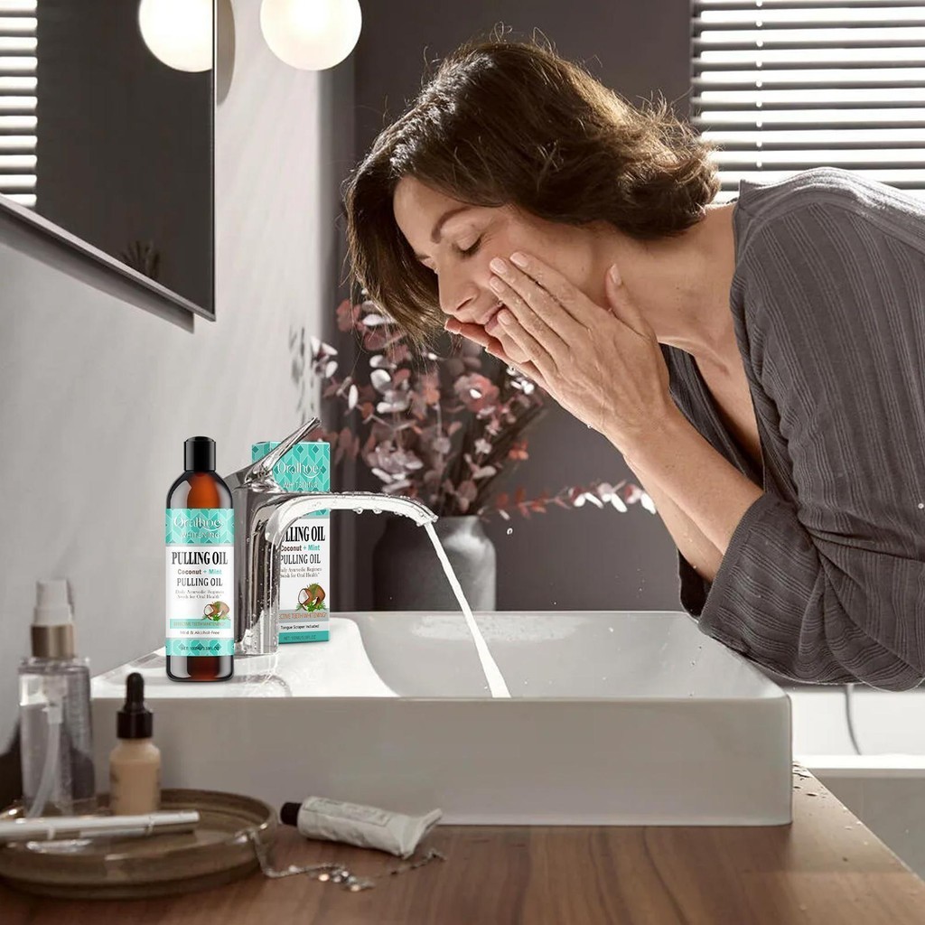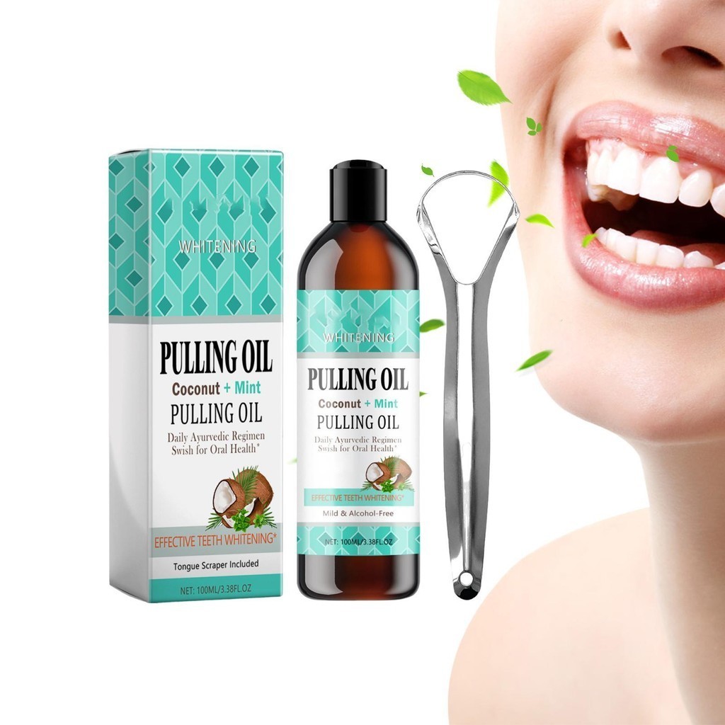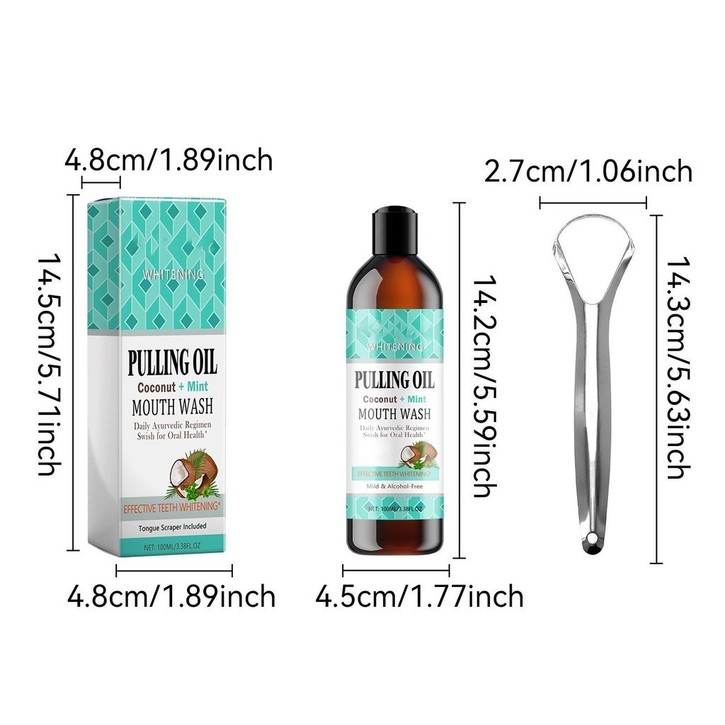 Coconut Oil Pulling for Teeth 100ml Natural Mouthwash with Tongue Scraper Oral Rinse Mouthwash for Healthy Teeth & wsdmy wsdmy