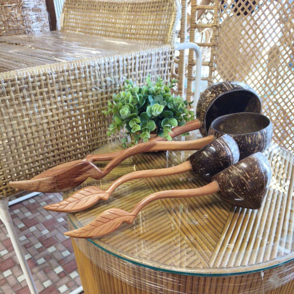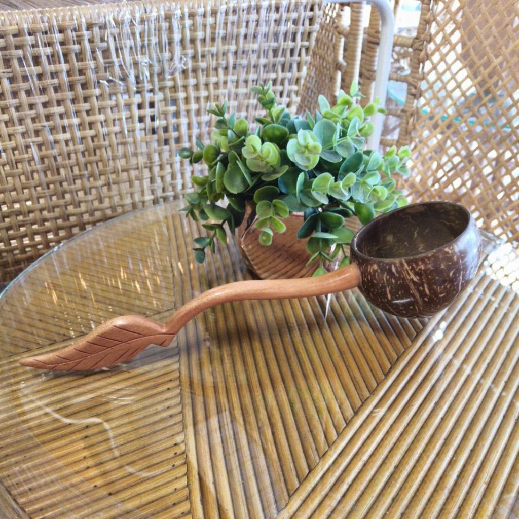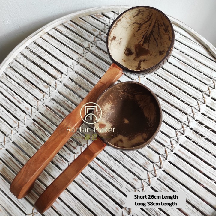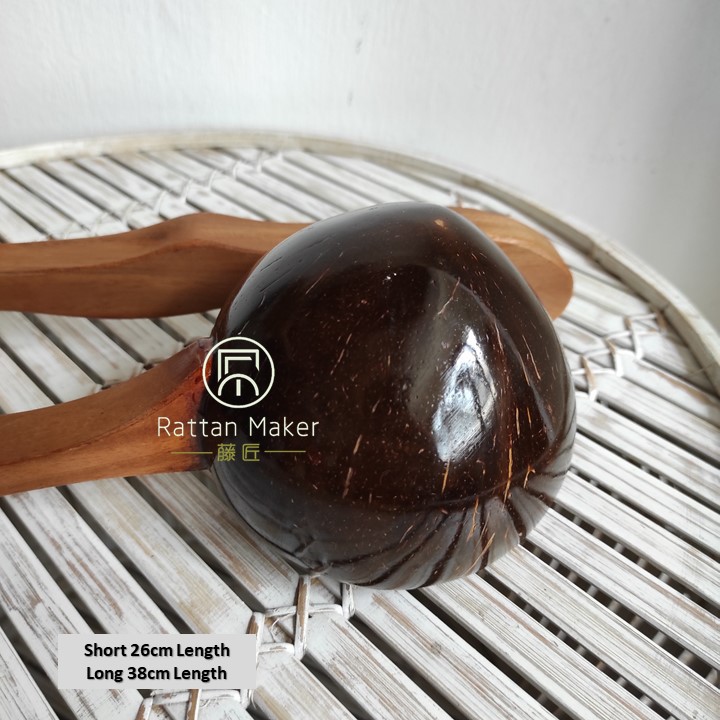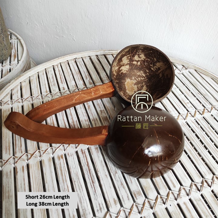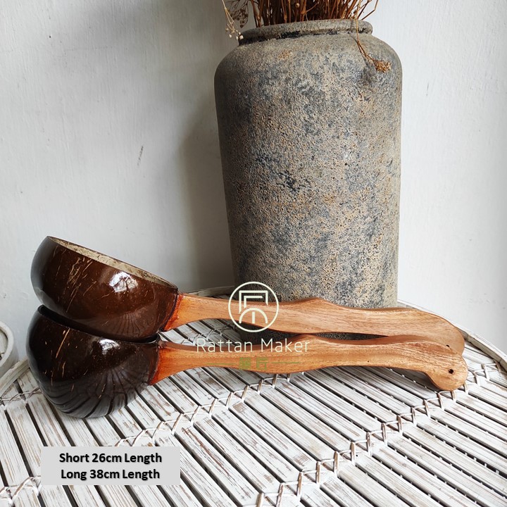 Coconut Shell Water Ladle Wood Nibong Wood Handle Soup Bowl Cocktail Mug Handcrafted from Rattan Maker