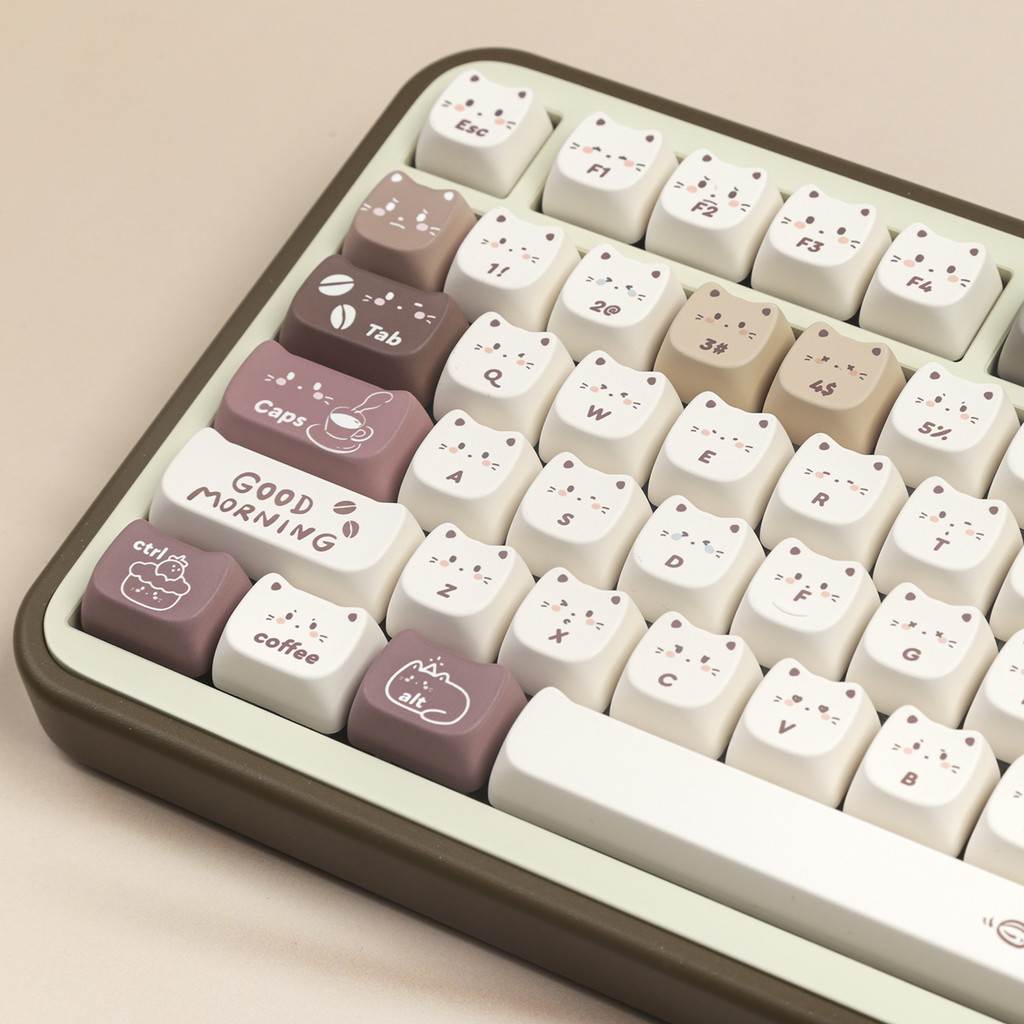 Coffee Kitten Keycaps MAO Profile Cute Cat Head Shape PBT Dye Sub Mechanical Keyboard Keycap