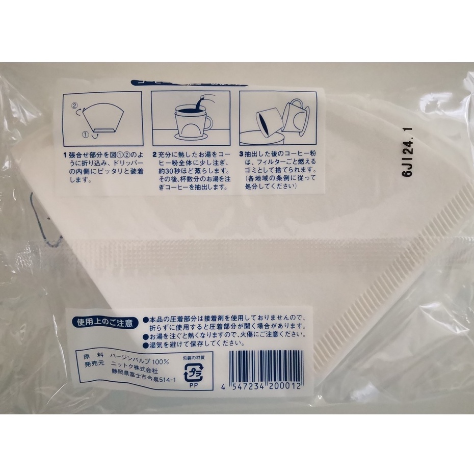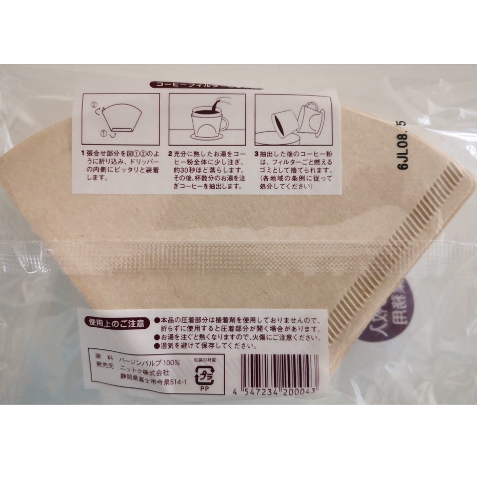 Coffee Paper Filter Nittoku (Import from Japan) Fan Shaped 100% Virgin Pulp ( 2 - 4 Cups ) - 100 pieces/pack
