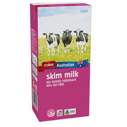 Coles Australian Skim Long Life UHT Milk No Added Permeate 99% Fat Free Milk 1 LIter