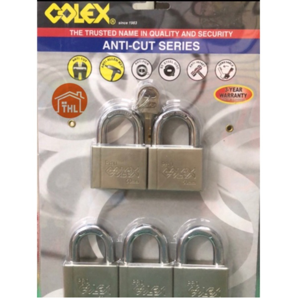 Colex Anti Cut Series Key Alike 40mm / 50mm Padlock # 3 keys #