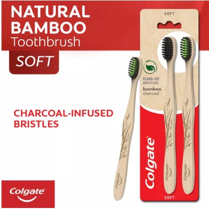 Colgate Biodegradable* Bamboo Charcoal Floss Tip Toothbrush Value pack 2s (Soft)