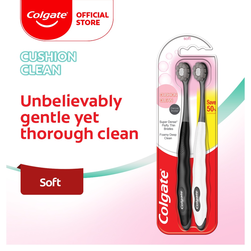 Colgate Cushion Clean Charcoal Super Dense Fluffy Thin Toothbrush Valuepack 2s (Soft)