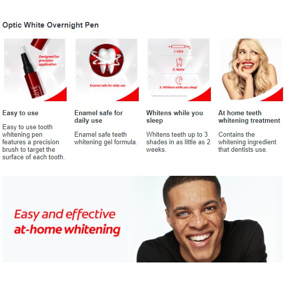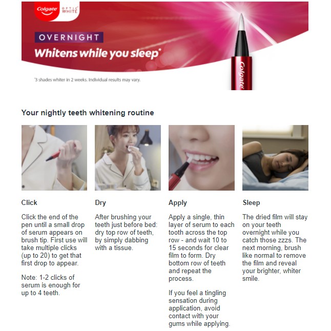 Colgate Optic White Overnight Teeth Whitening Treatment Pen 2.5mL / Pro Series 5% Toothpaste 80g