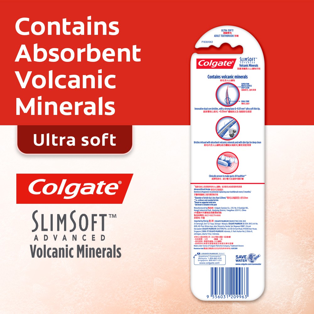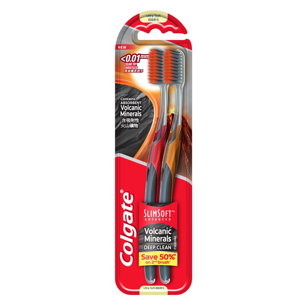 Colgate SlimSoft Advanced Volcanic Minerals Toothbrush Valuepack 2s (Ultra Soft)