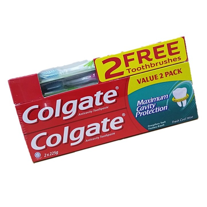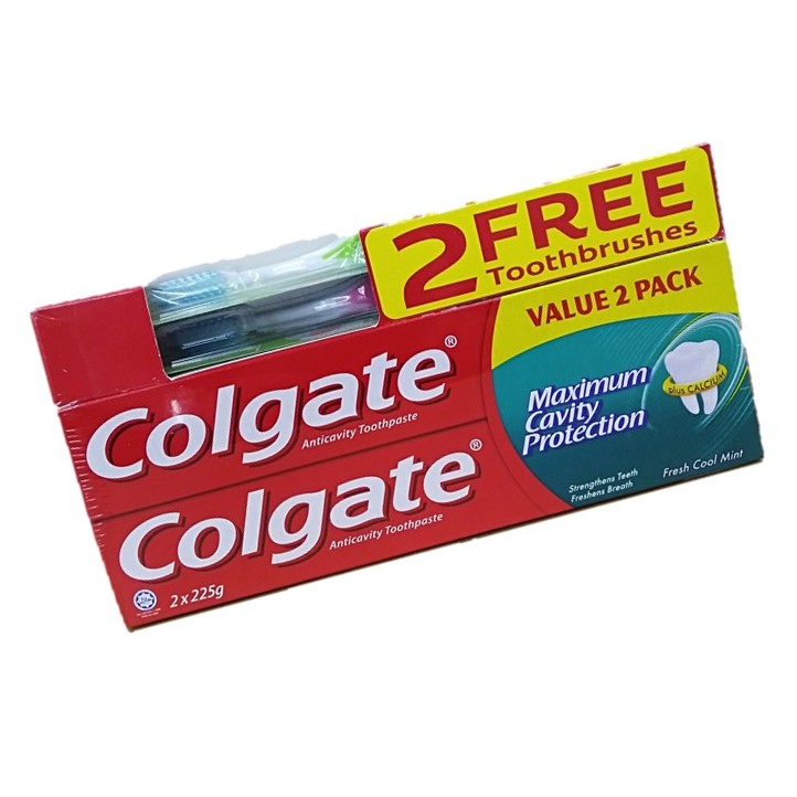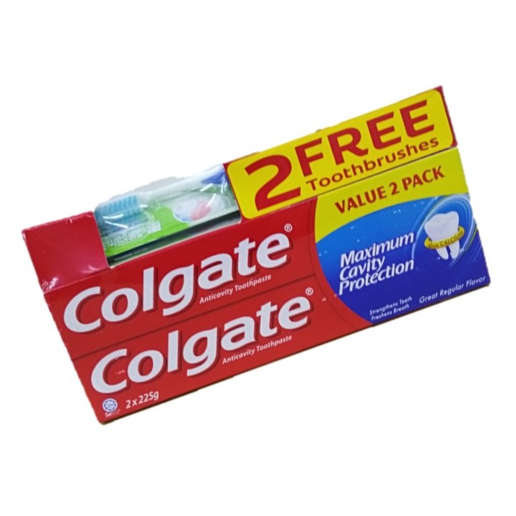 Colgate Toothpaste 2 x 225g [FREE 2 Toothbrushes]