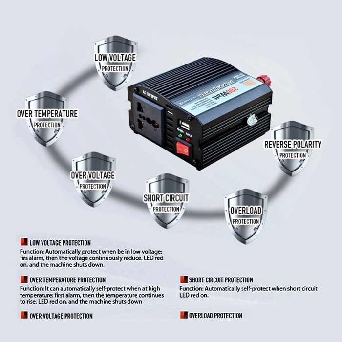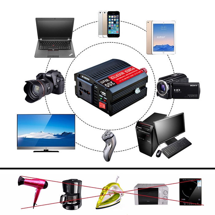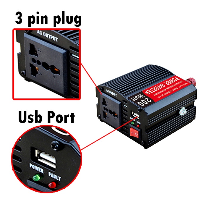 Collab 150W / 200W USB 3 PIN PLUG PORT 12V to 220V Car Inverter Solar Power LED Voltage Converter Universal Socket