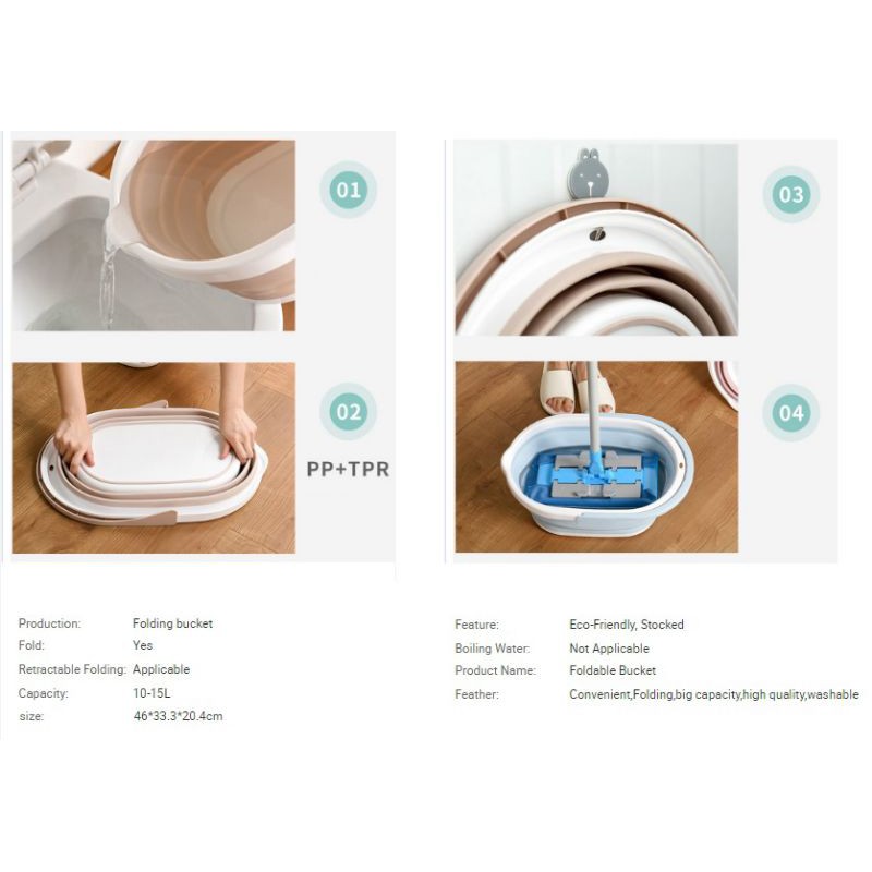 Collapsible Bucket Foldable Bucket Portable Water Pail Suitable for Flat Mop, Car Washing, Travelling