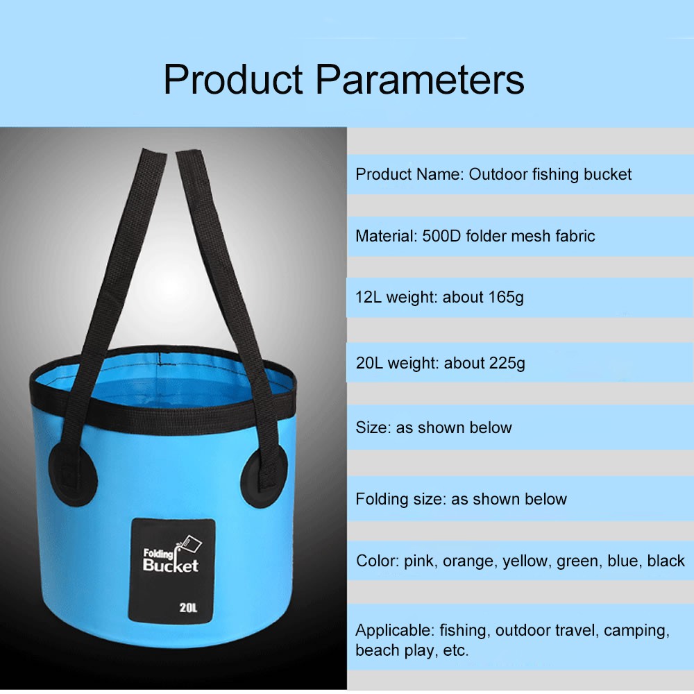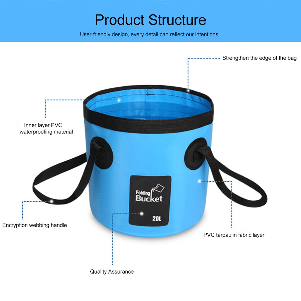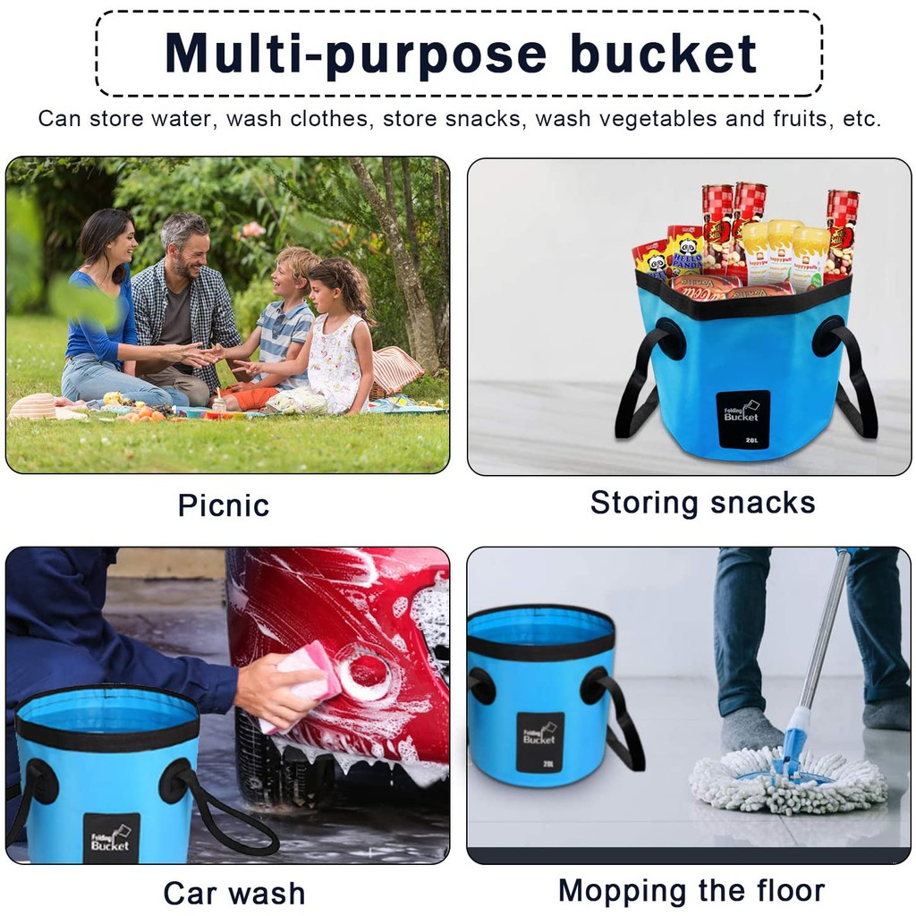Collapsible Bucket with Handle, Lightweight Folding Water Container 5 Gallon (20L), Portable Collapsible Bucket for Fishing, Camping, Hiking, Backpacking, Outdoor Survival, Car Washing