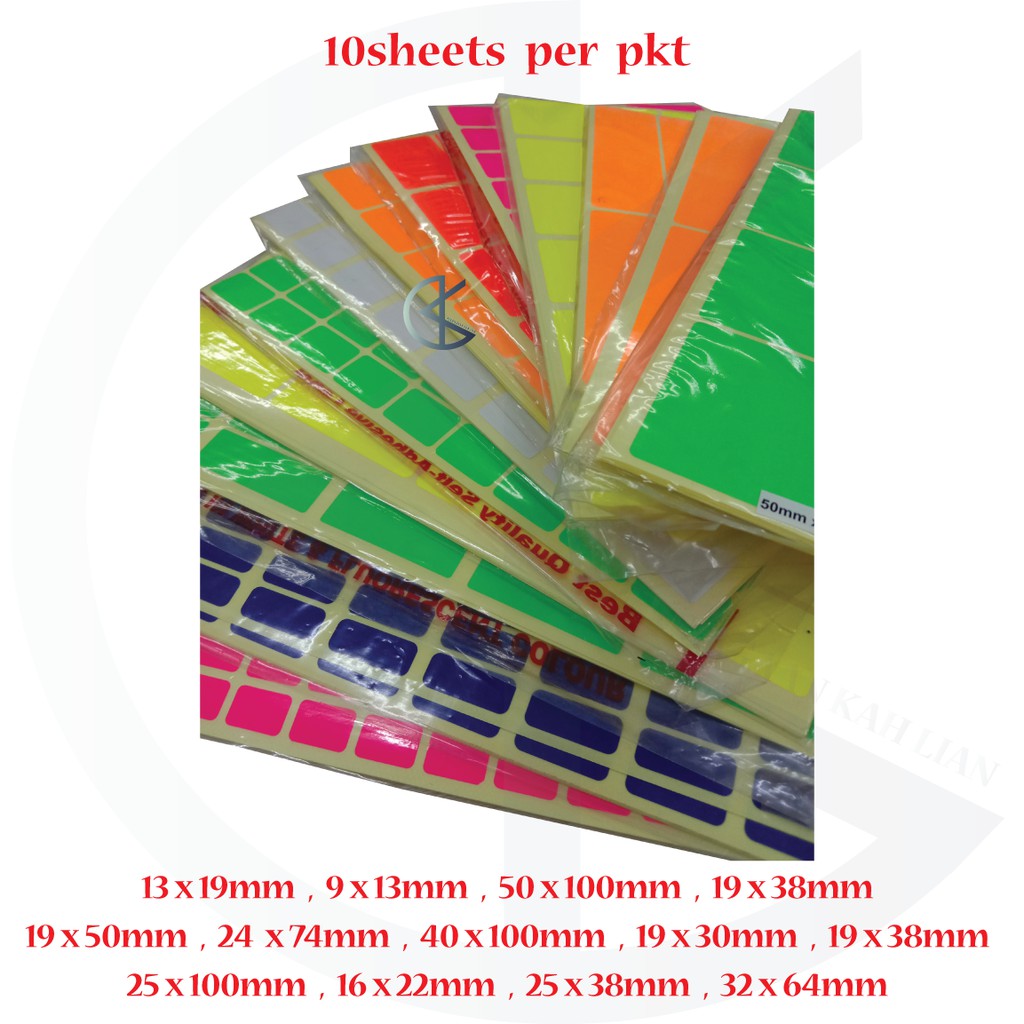 Color Sticker / Label Paper Sticker Fluorescent Colour (10 Sheets per pkt)