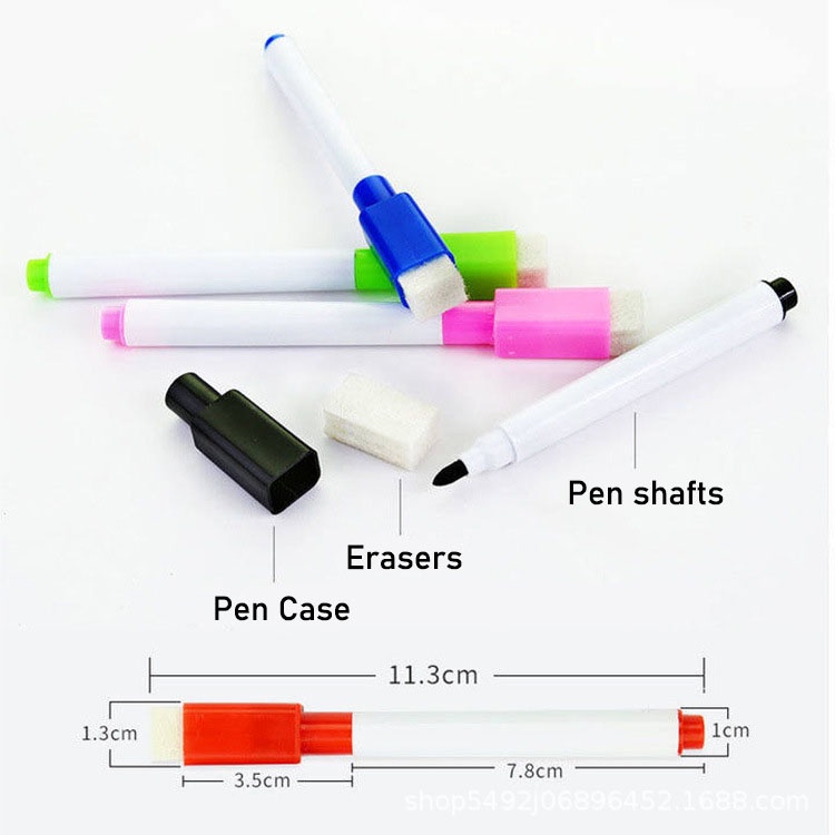 Color Whiteboard Marker Pen with Eraser Blue Red Black Pink Purple Green Yellow White Board Pen with Brush School Office Supplies