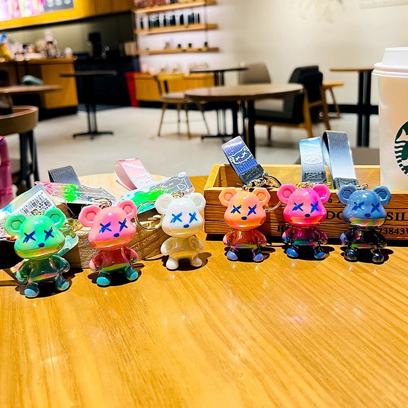 Colorful Cartoon Bearbrick Gloomy Bear Keychain Bag Pendant Birthday Present Couple Bag Keychain Bear Brick Keyring