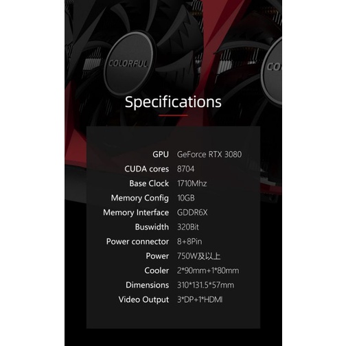 Colorful RTX 3080 NB 10G-V Graphic card grafik kad